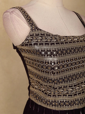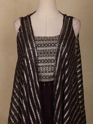 Step into elegance with this exquisite purple georgette party lehenga, crafted for women who love to blend tradition with contemporary charm. The lehenga features a flowing georgette base that drapes gracefully, offering both comfort and flair.