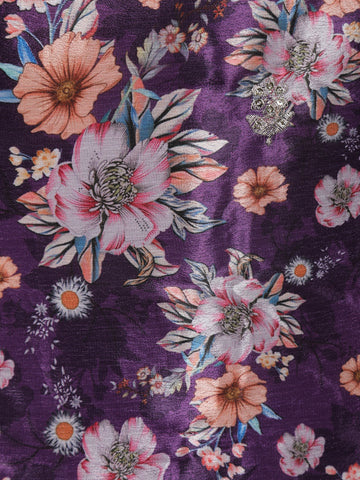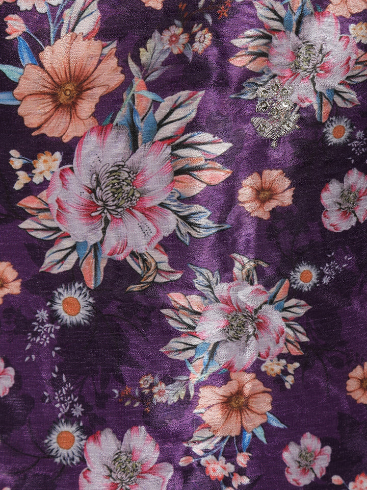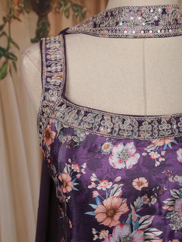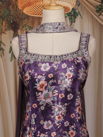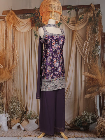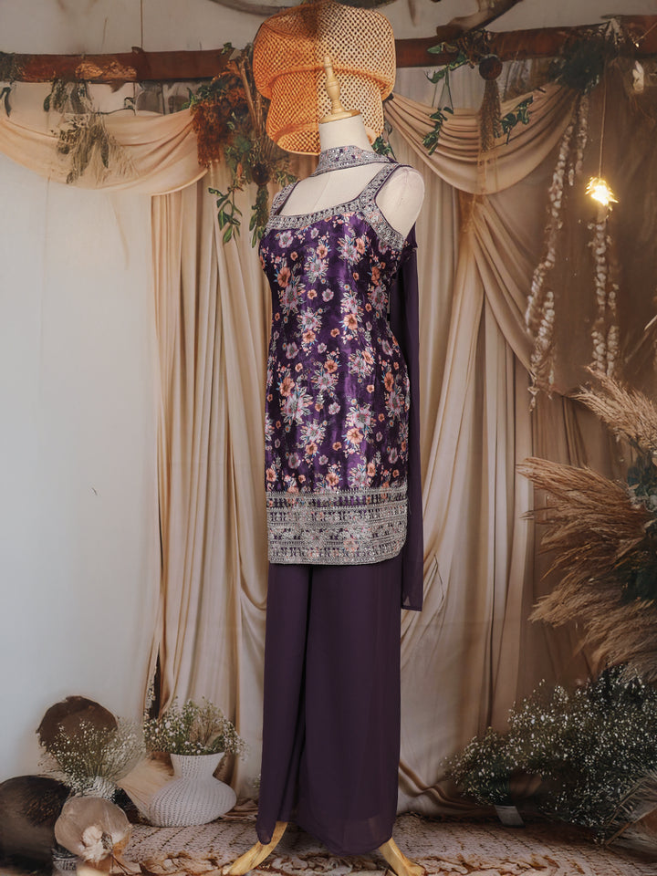 Dark Purple Floral Design Chiffon Palazzo Suit with Dupatta