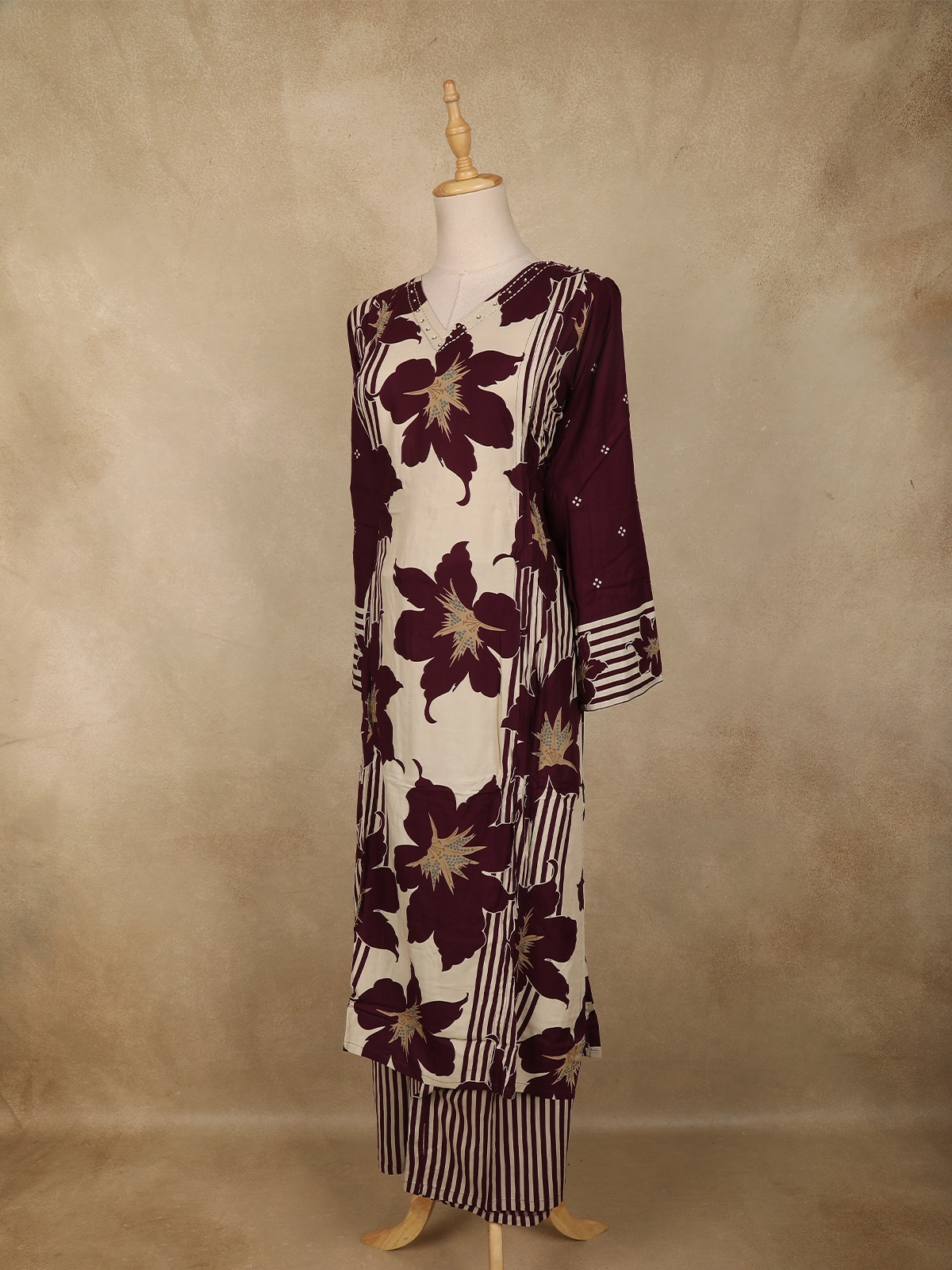 Dark Purple Floral Printed Design Cotton Co-ord Set