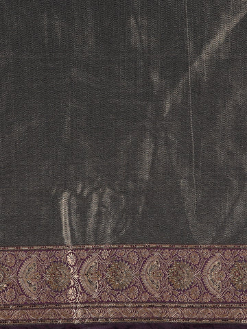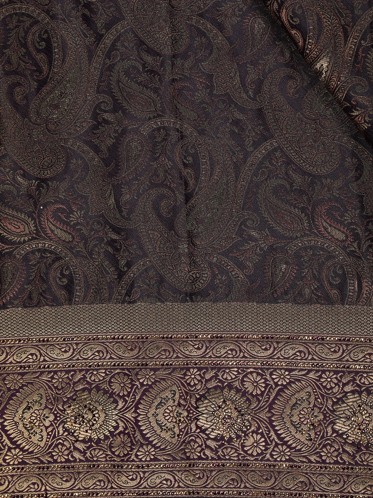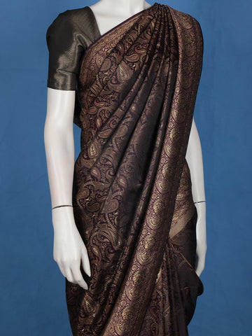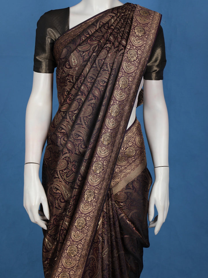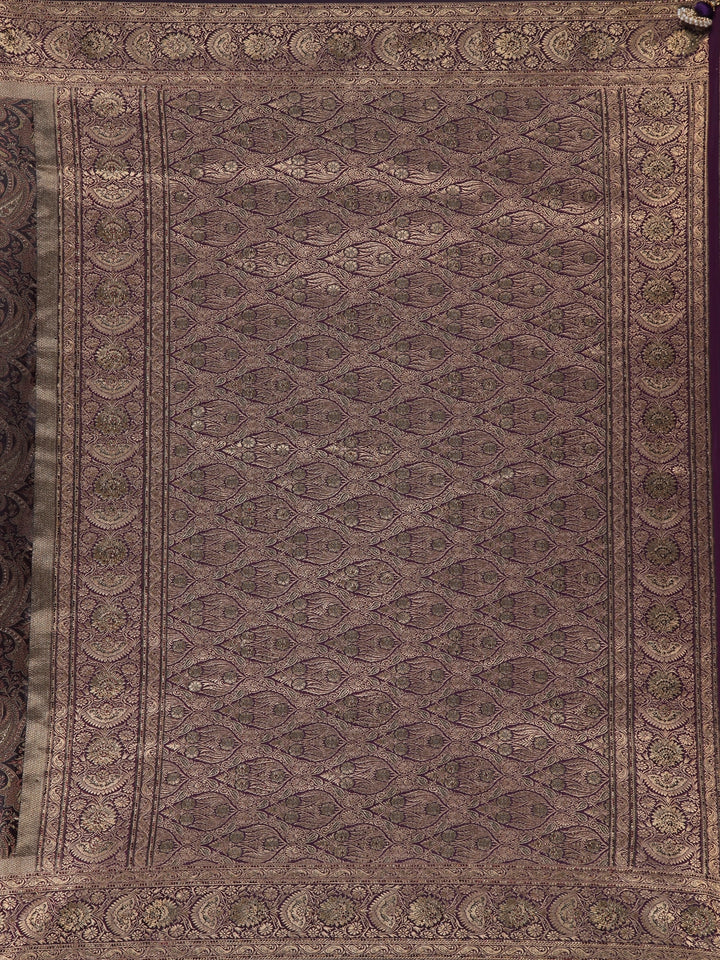 Dark Purple Paisley Woven Banarasi Silk Saree