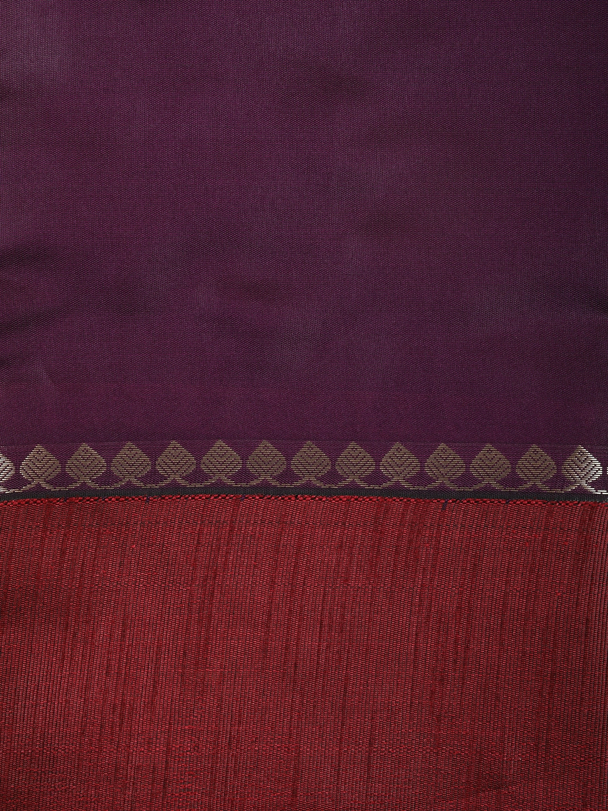 Crafted in a deep royal purple hue, the saree showcases a smooth, lustrous soft silk texture that drapes beautifully and offers a luxurious feel. The solid body highlights the richness of the fabric, making it an ideal choice for those who love understated sophistication with a regal touch.