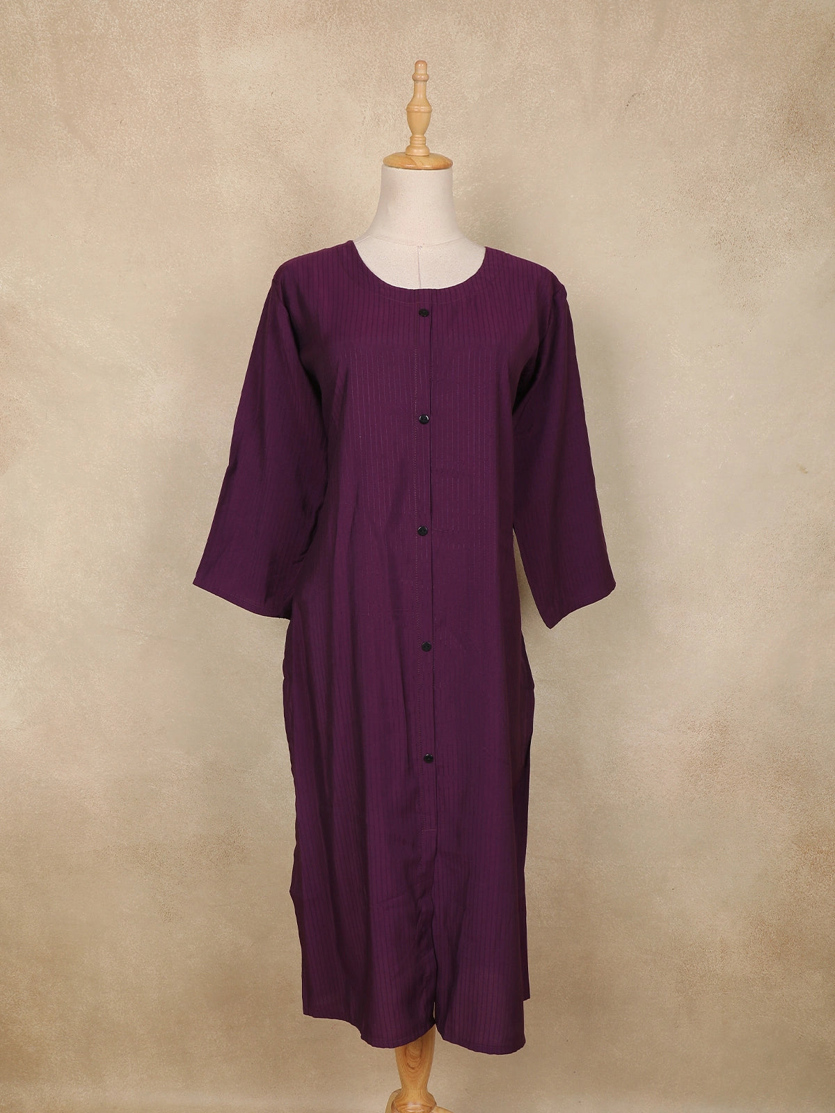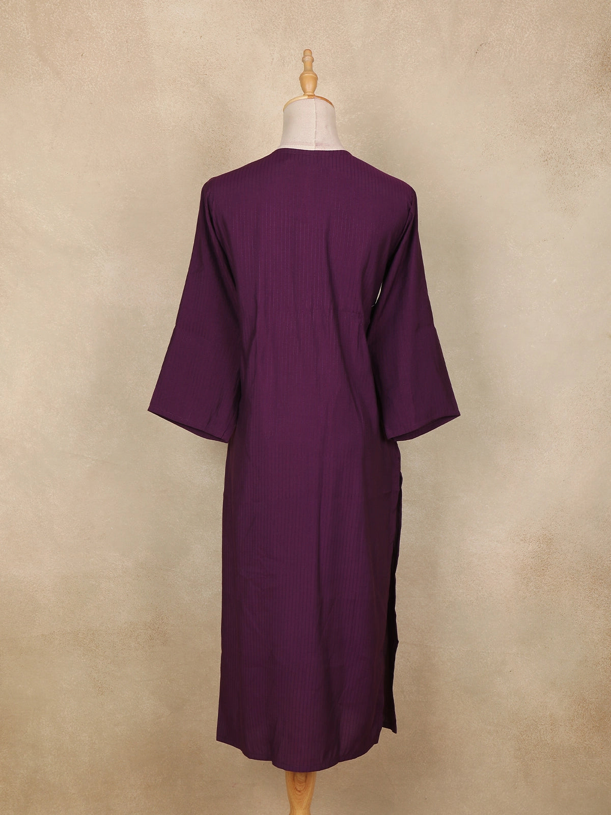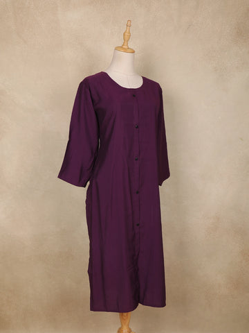 Step into effortless elegance with this Dark Purple Striped Cotton Kurti, designed for women who love comfort blended with minimal chic. Crafted from soft and breathable cotton fabric, this kurti features a subtle vertical stripe texture that adds a refined and elongated look to the silhouette.
