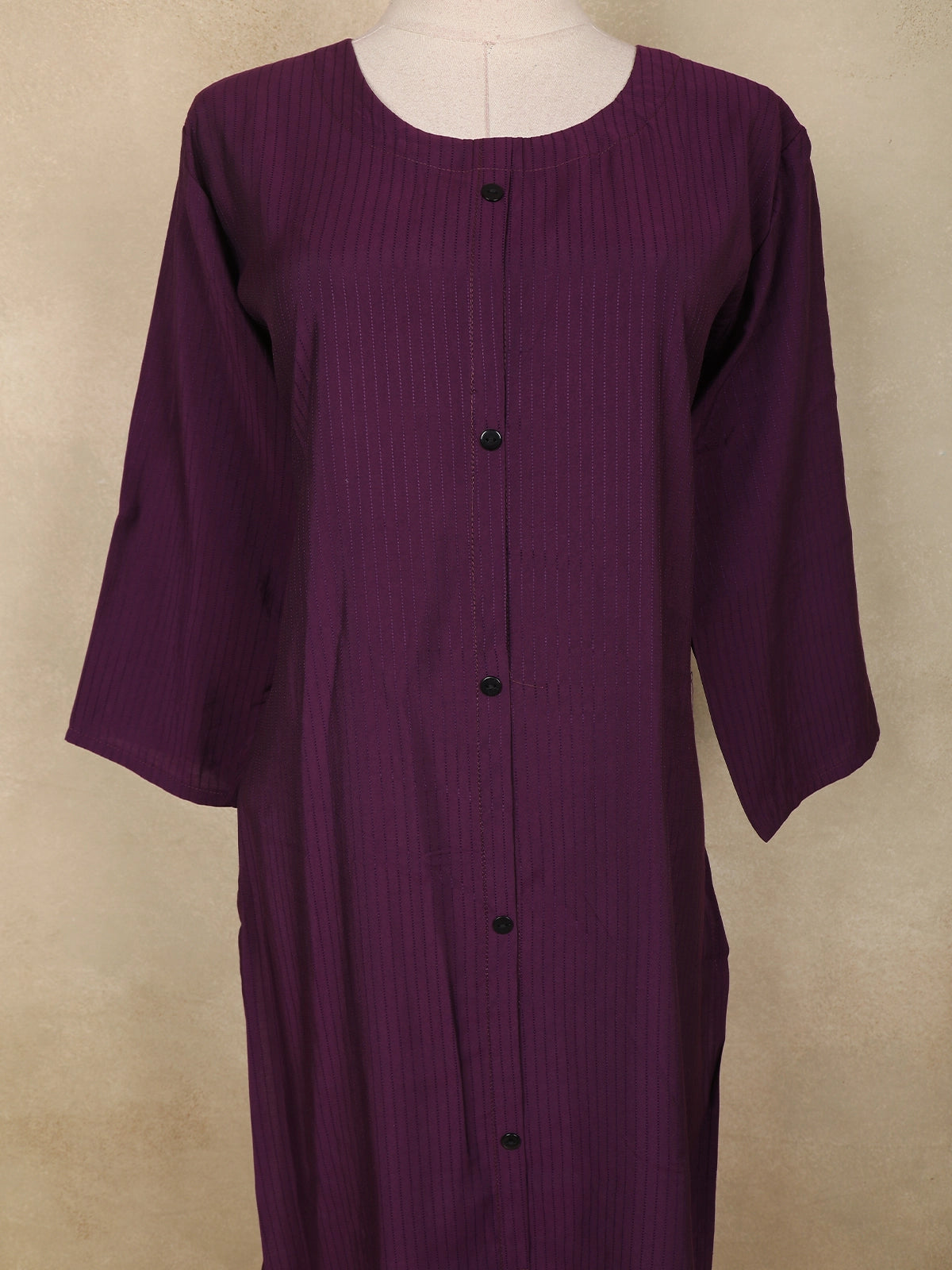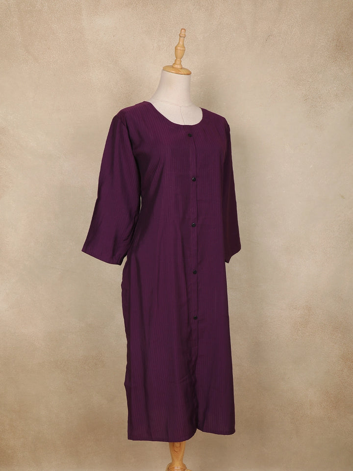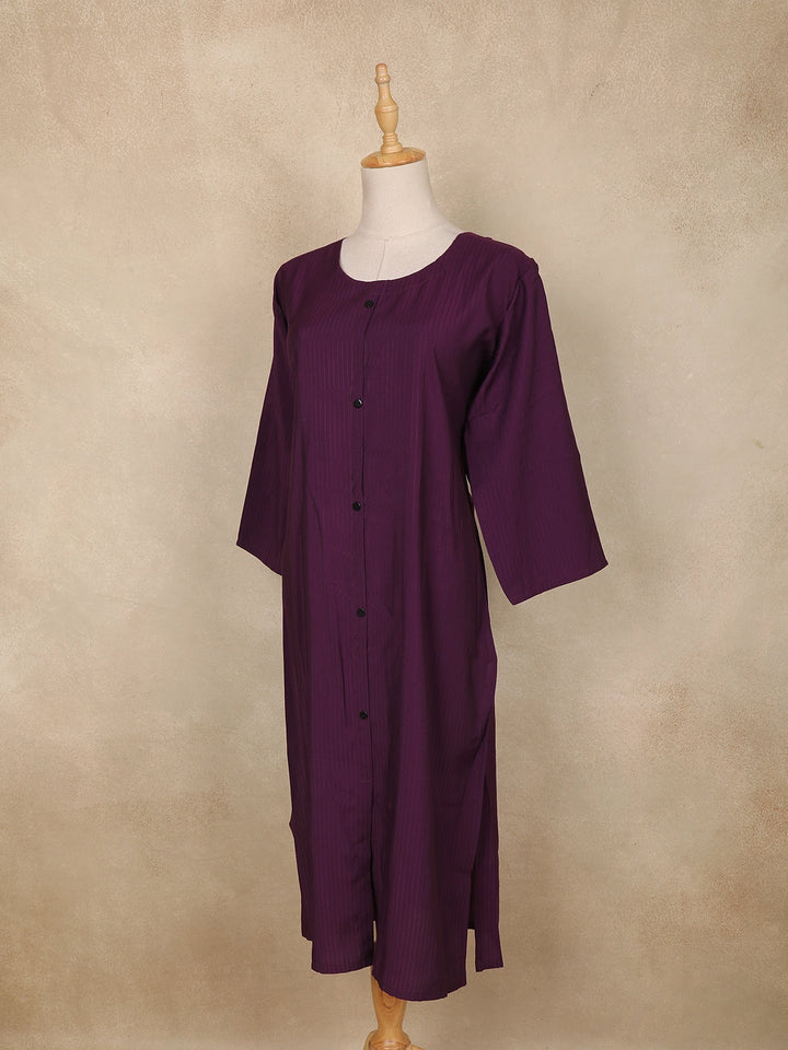 Dark Purple Striped Design Cotton Kurti