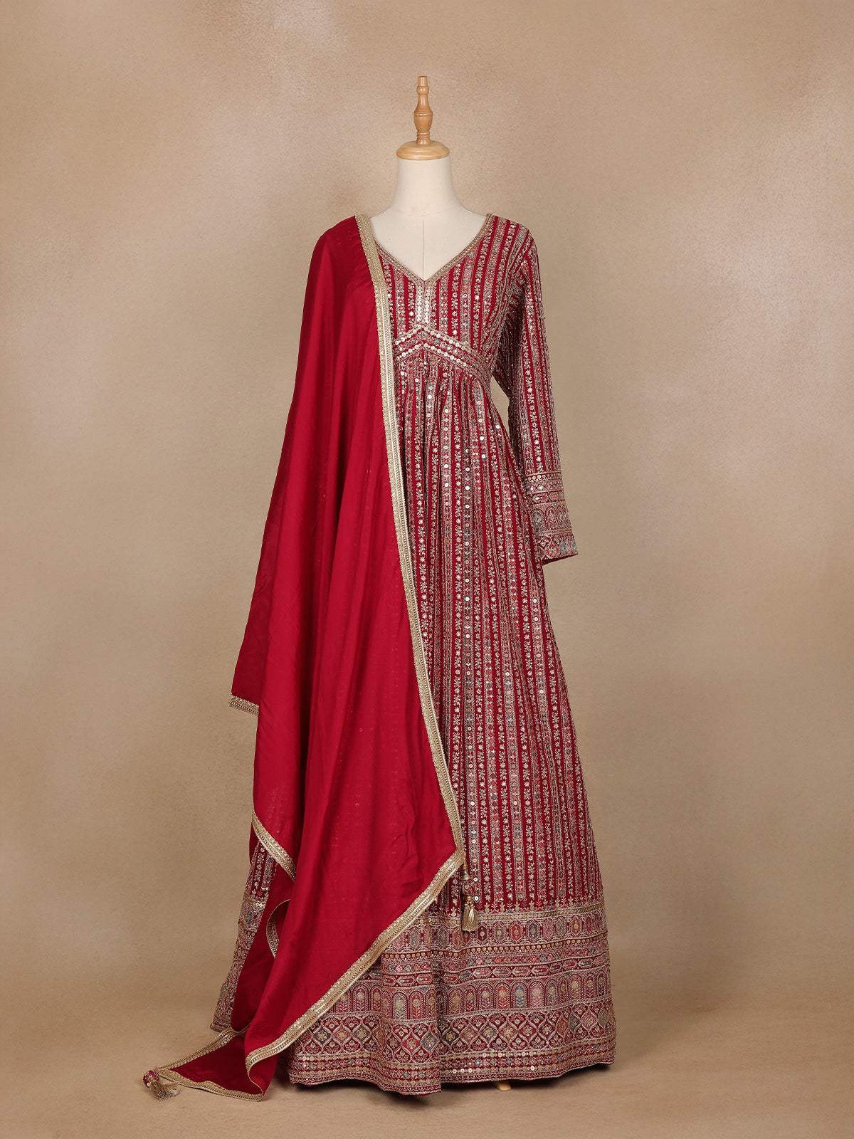 Dark Red Sequins Embroidery Georgette Gown and Dupatta