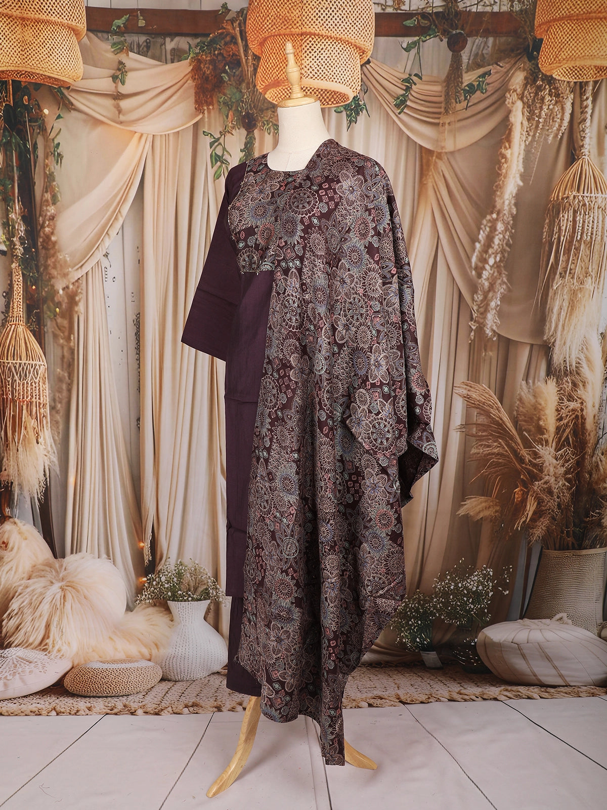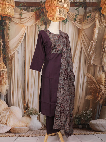 Dark Wine Floral printed Design Cotton Straight Cut Salwar Suit with Dupatta