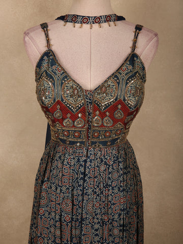 Paired with matching palazzo pants that echo the ensemble’s ethnic charm, the set offers both comfort and graceful movement. The coordinating dupatta completes the look with complementary Ajrakh patterns and borders, enhancing the outfit’s cohesive and refined appeal.