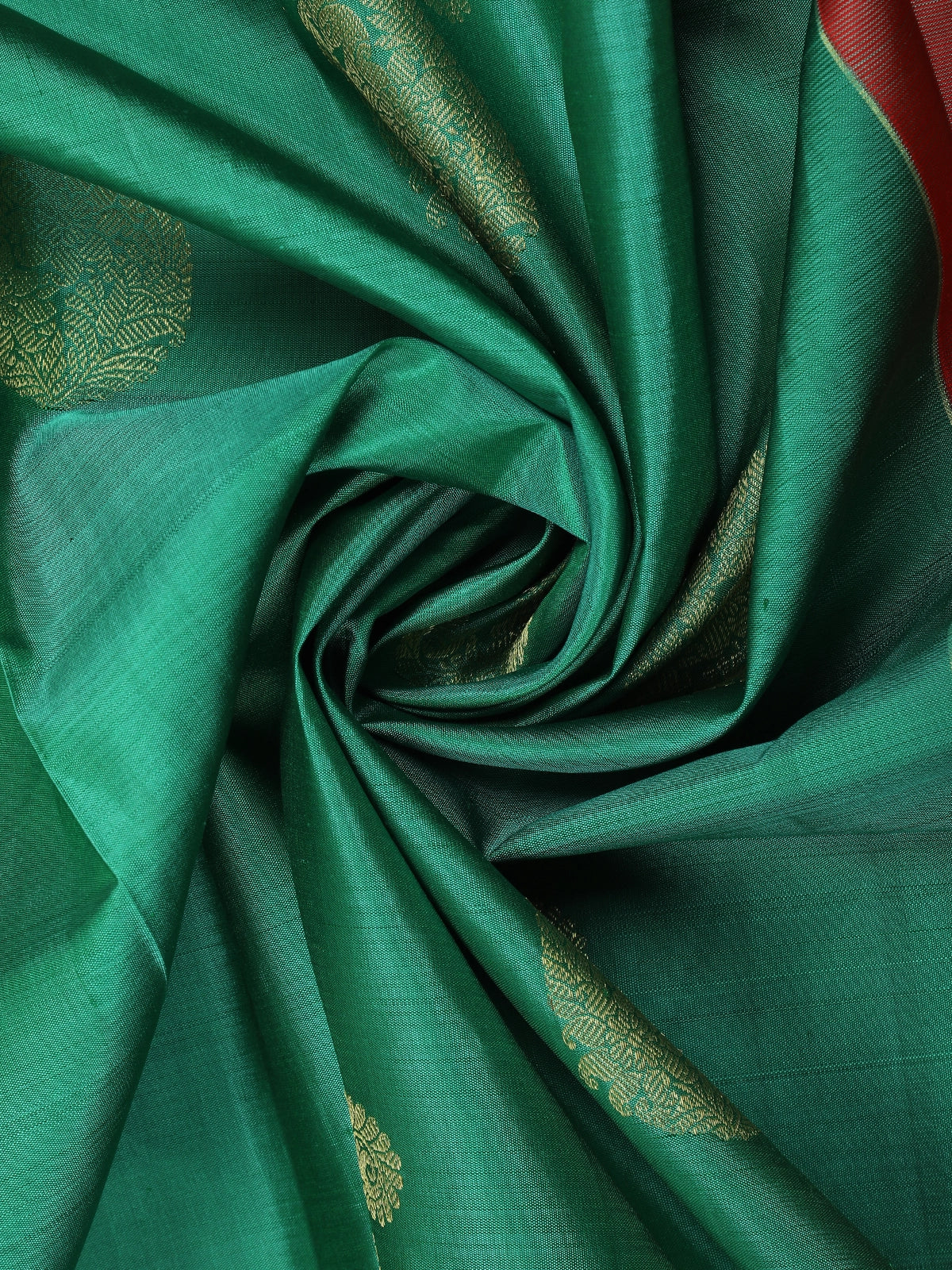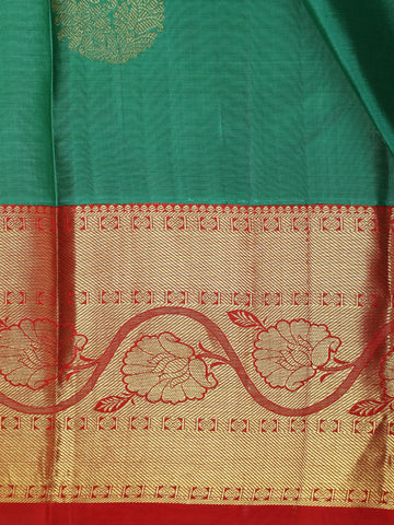Deep Bottle Green Floral Butta Zari Woven Design Pure Kanchipuram Silk Saree with Contrast Zari Border