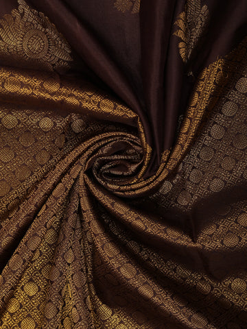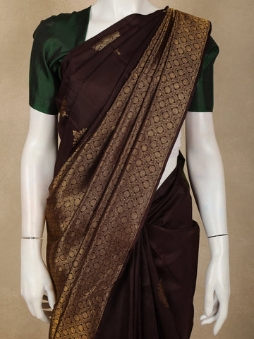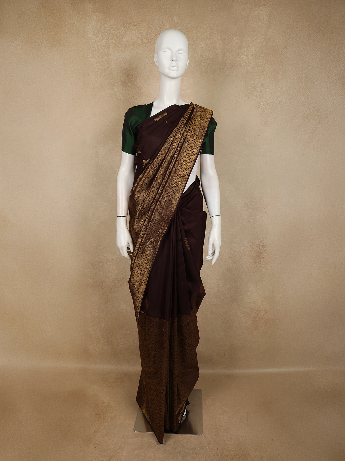 Deep Coffee Brown Geometric Zari Woven Design Pure Kanchipuram Silk Saree