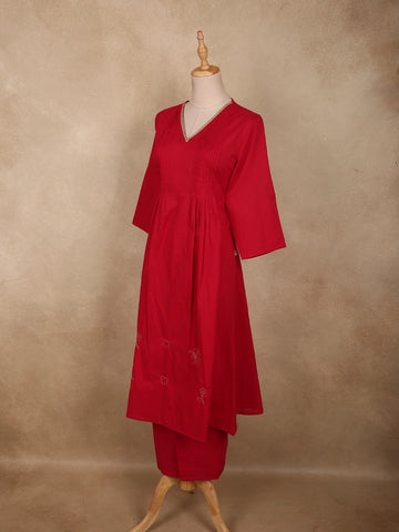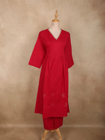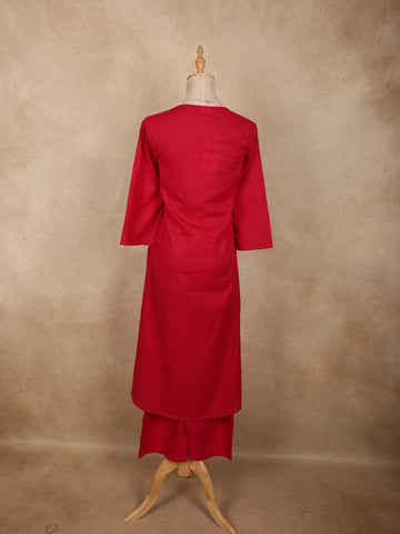 Deep Crimson Red Solid Woven Design Cotton Co-ord Set
