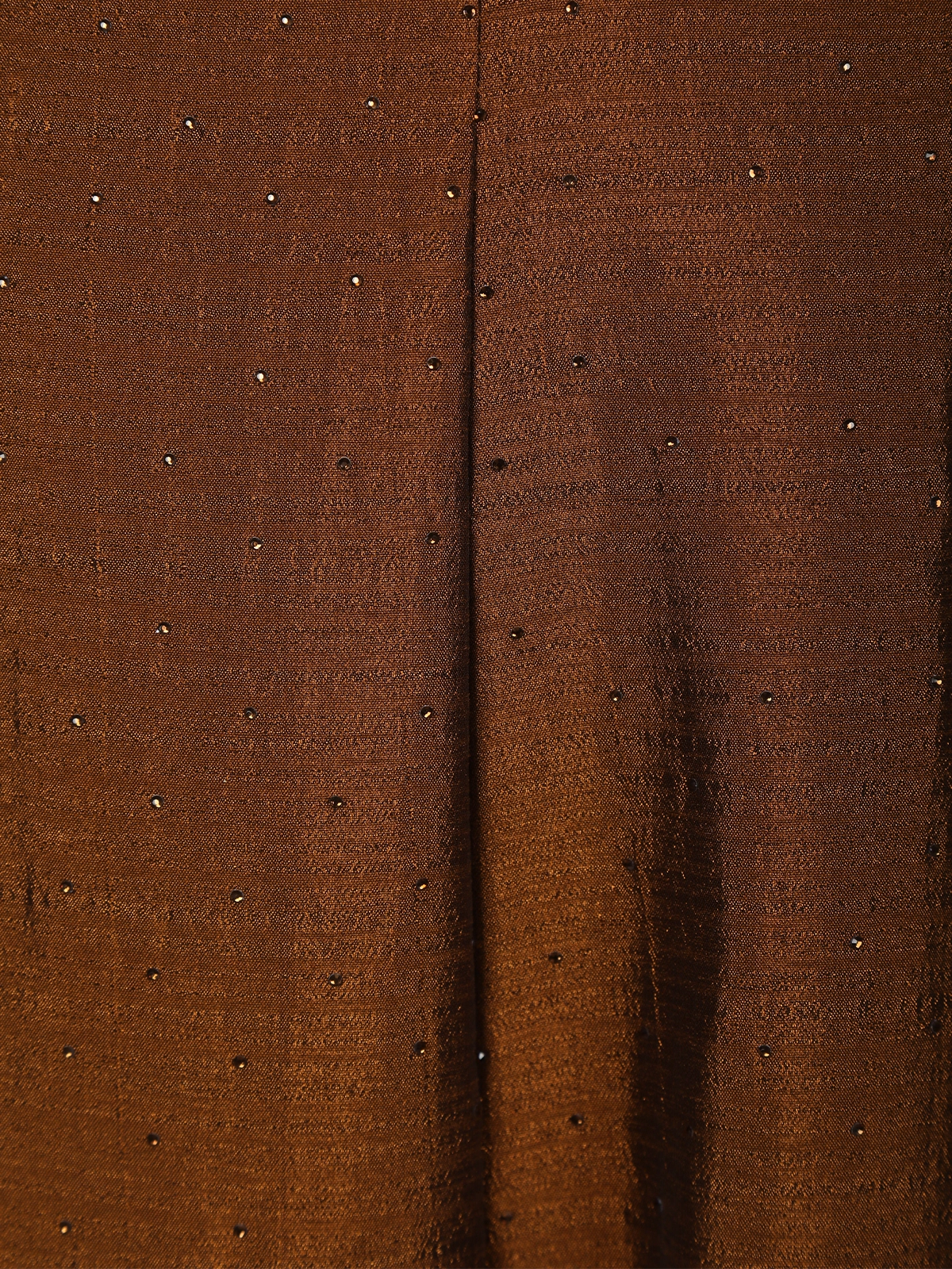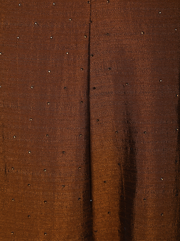 This deep earthy brown georgette gown is a graceful expression of understated luxury, designed for refined festive and occasion wear. Crafted from soft, flowy georgette fabric, the gown drapes beautifully, offering a flattering silhouette with effortless movement. The rich brown hue is enhanced with delicate floral embroidery and subtle sequin accents, lending a warm, elegant shimmer to the ensemble.