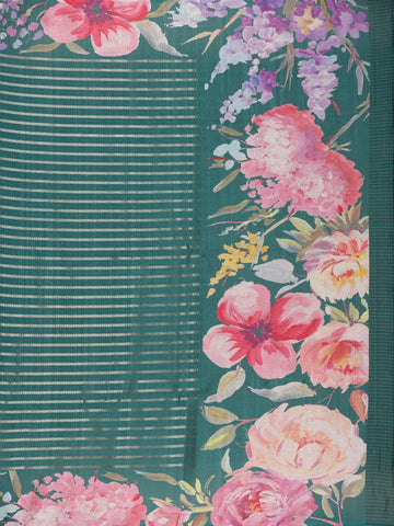 Drape yourself in elegance with this Deep Green Striped Design Semi Tussar Silk Saree, a stunning combination of sophistication and artistry. Crafted from premium semi tussar silk, this saree features a graceful striped woven design across the body that adds texture and subtle sheen. The vibrant floral printed border and pallu introduce a refreshing burst of color, beautifully balancing the rich green tone with feminine charm.