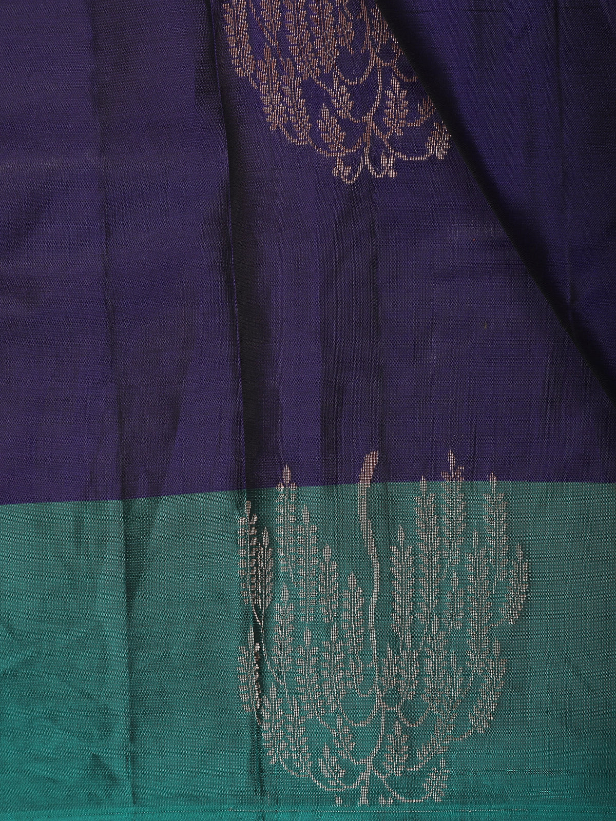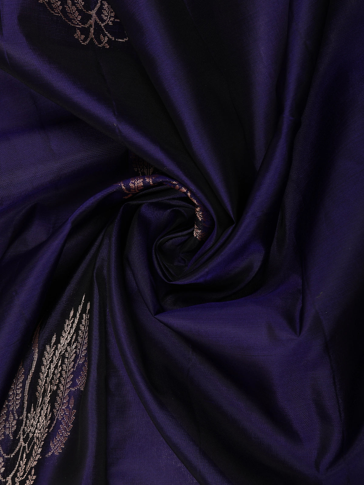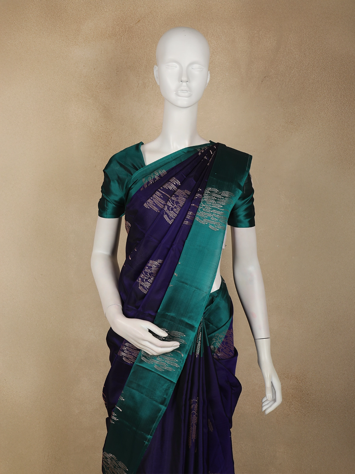 Deep Indigo Blue Butta Woven Design Soft Silk Fancy Saree with Contrast Border