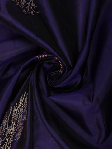 This Deep Indigo Blue Butta Woven Design Soft Silk Fancy Saree is a graceful blend of rich hues and traditional elegance. Crafted from premium soft silk, the saree features a deep indigo blue body that exudes depth, sophistication, and a subtle lustrous sheen. The body is adorned with finely woven butta motifs in shimmering zari, adding refined texture and an elegant highlight to the overall design.
