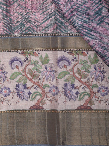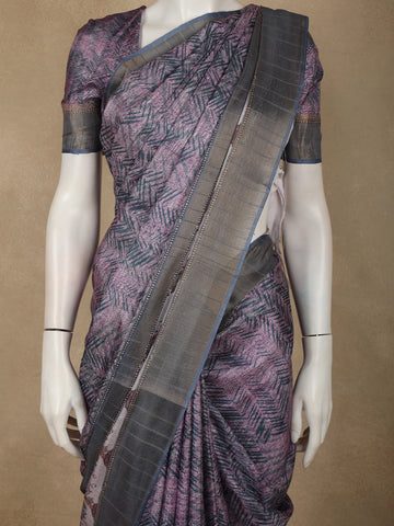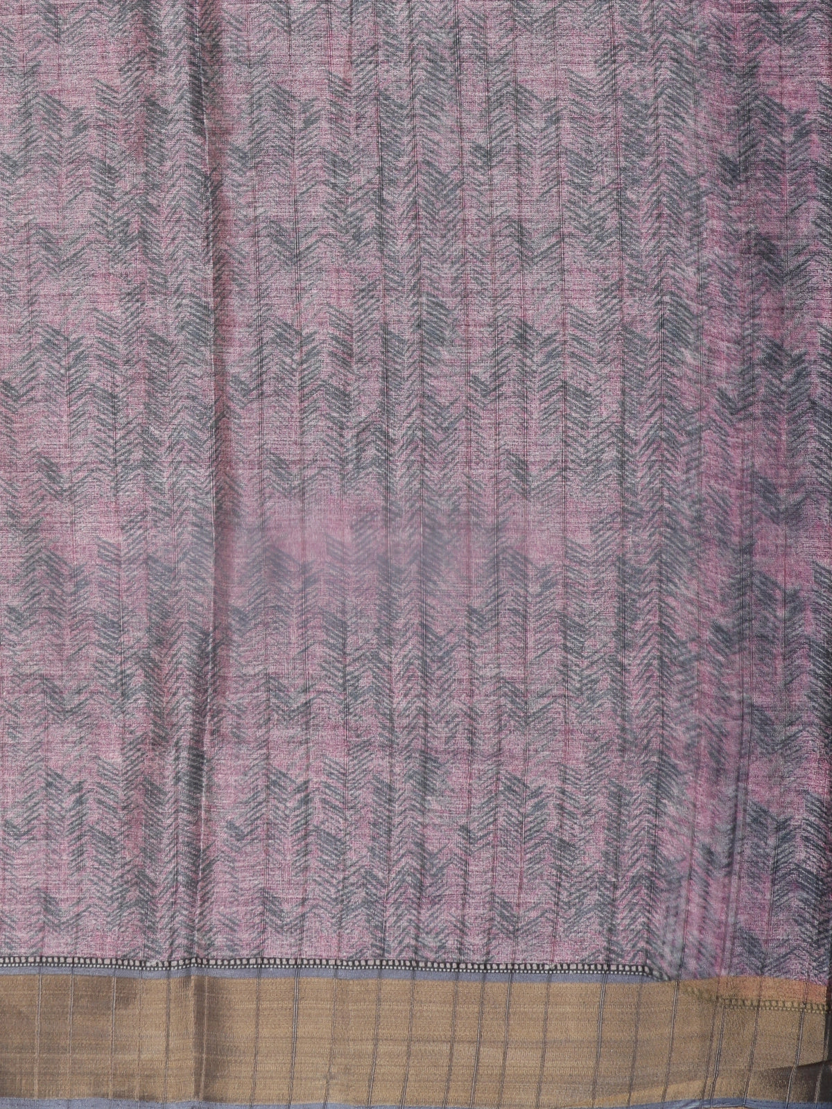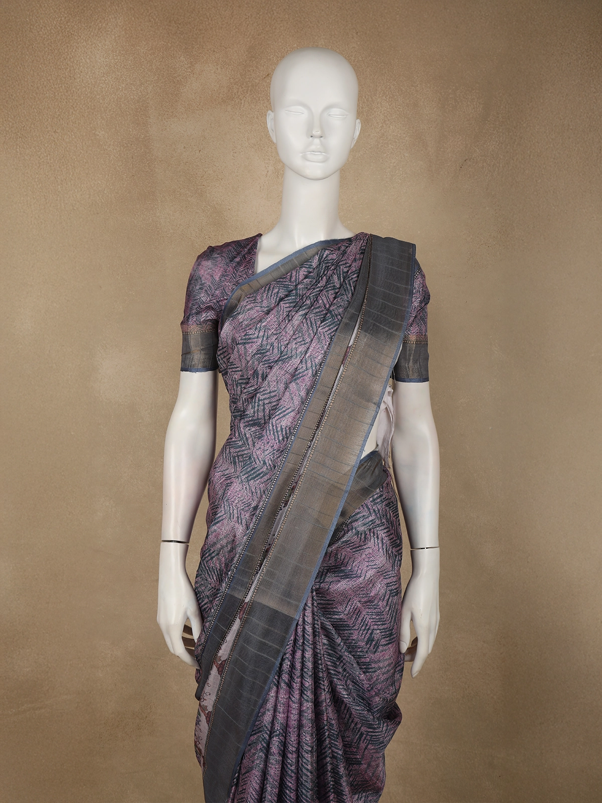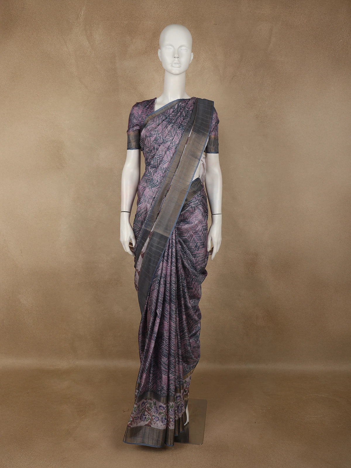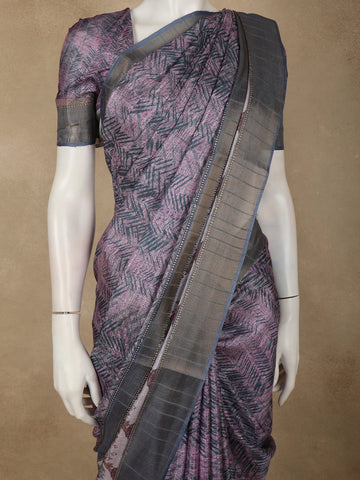 Deep Mauve Purple Floral Printed Design Semi Tussar Saree