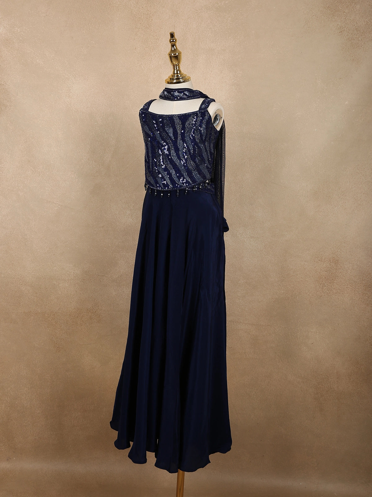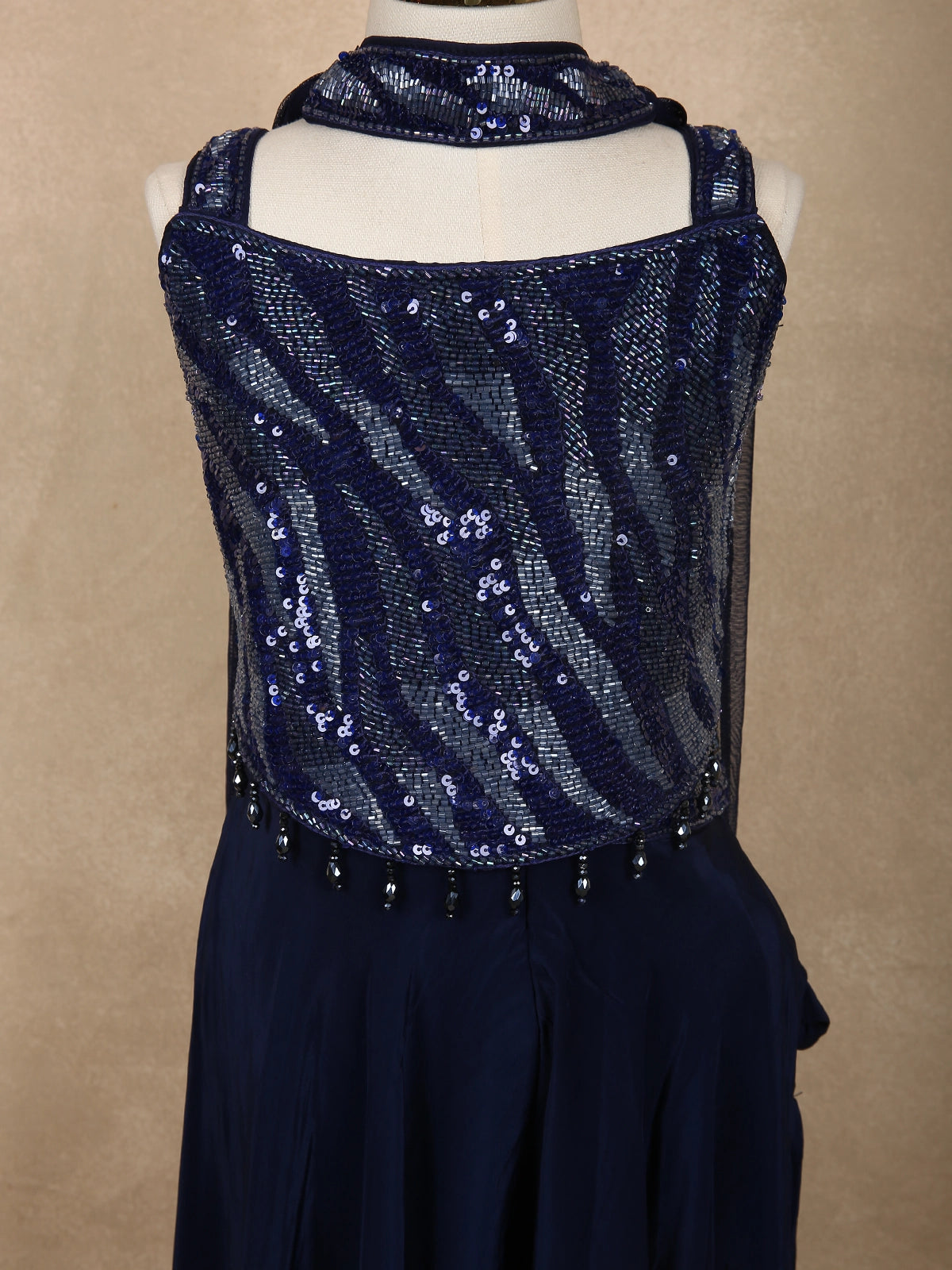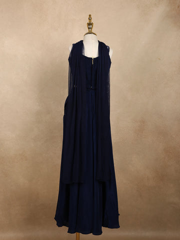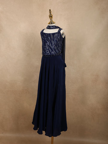 Deep Midnight Navy Blue Sequins Design Satin Kids Palazzo Suit with Dupatta