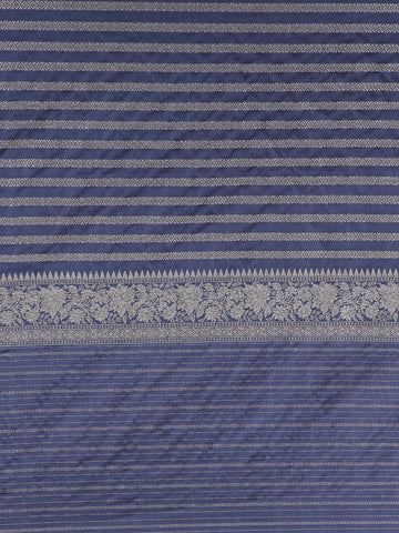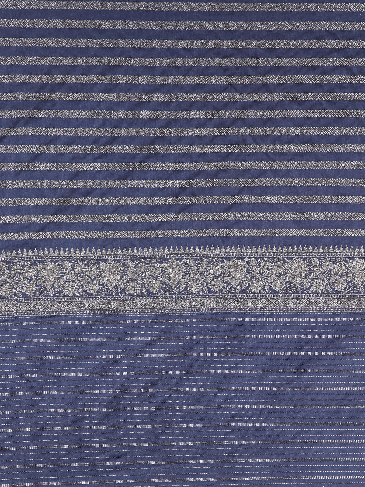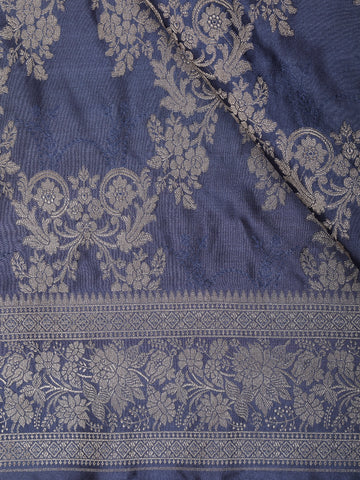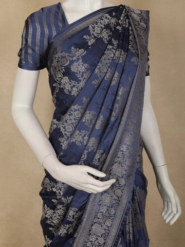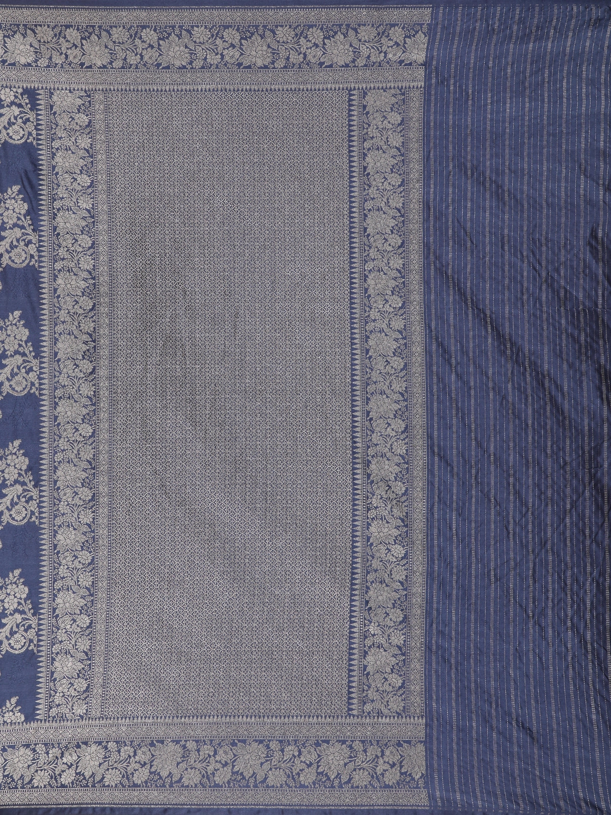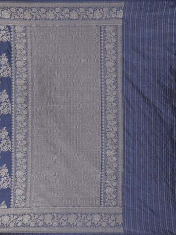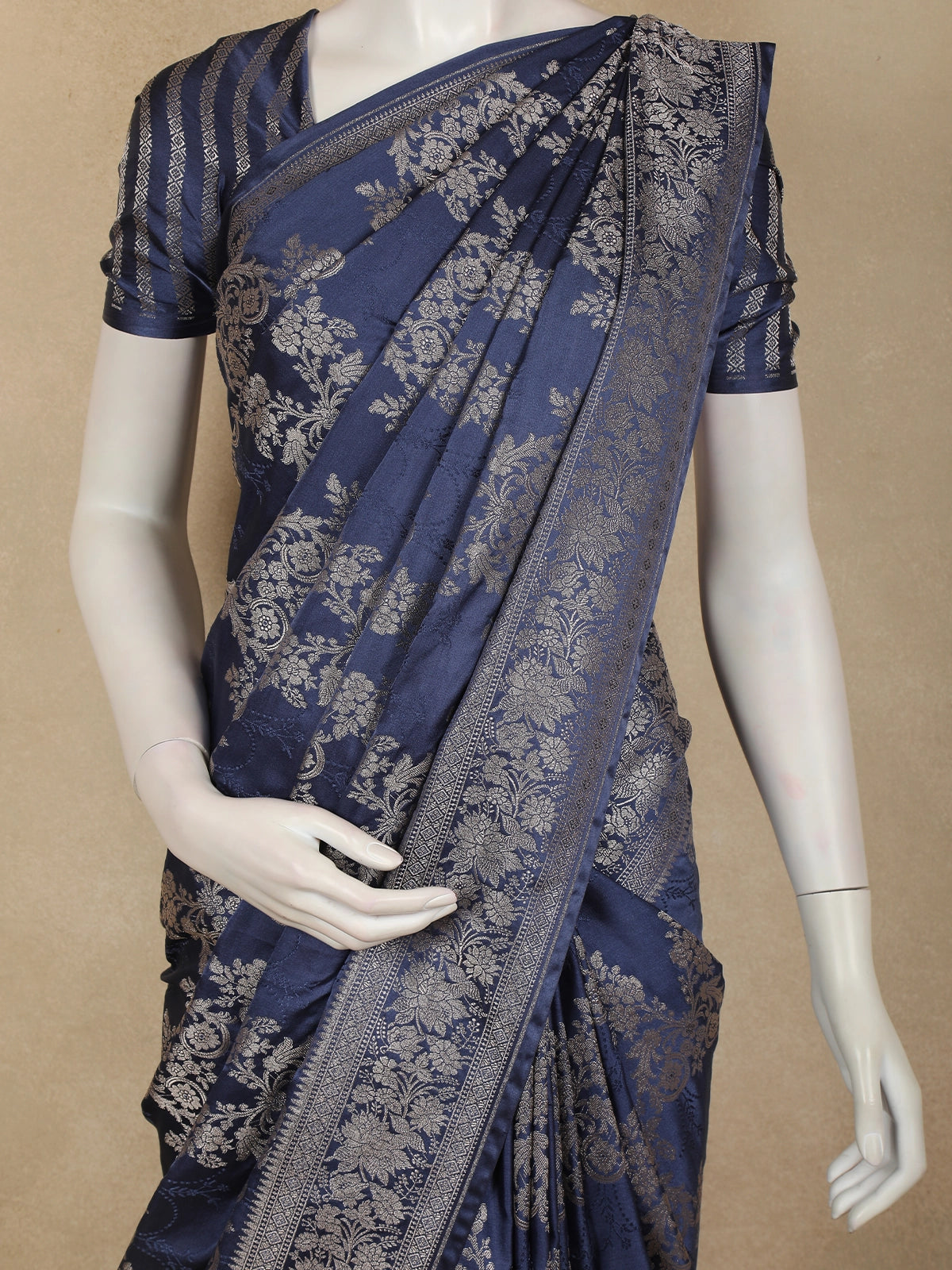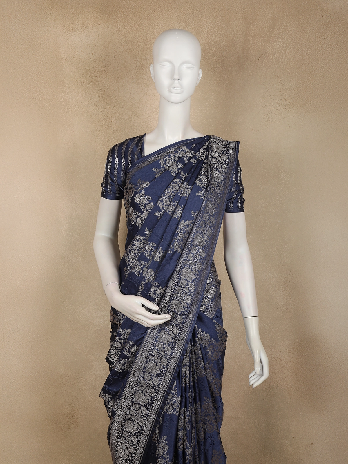 Deep Navy Blue Floral Zari Woven Design Pure Banarasi Silk Saree with Zari Border