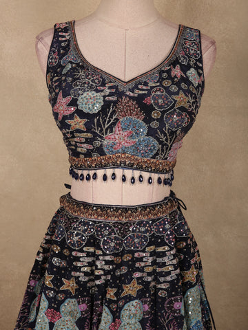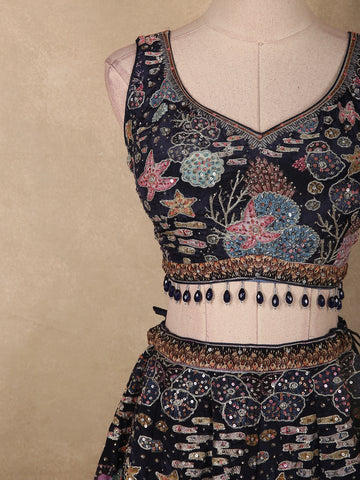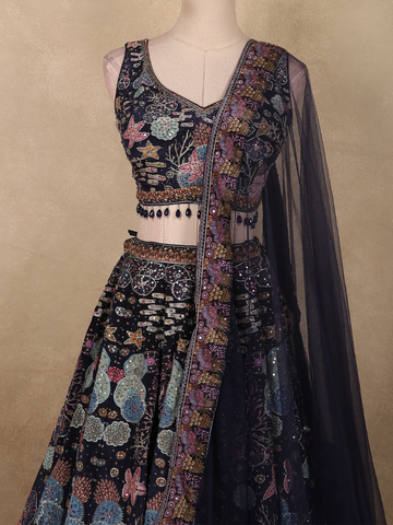 Deep Navy Blue Geometric Sequins and Beads Embroidered Design Bridesmaid Lehenga with Dupatta