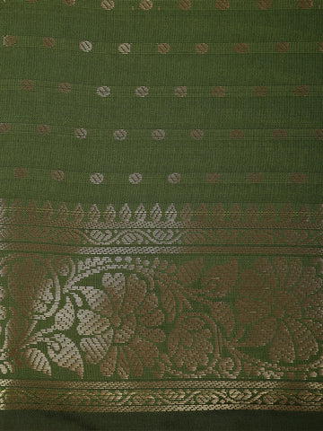 Deep Olive Green Butta Zari Woven Design Semi Silk Saree with Floral Border
