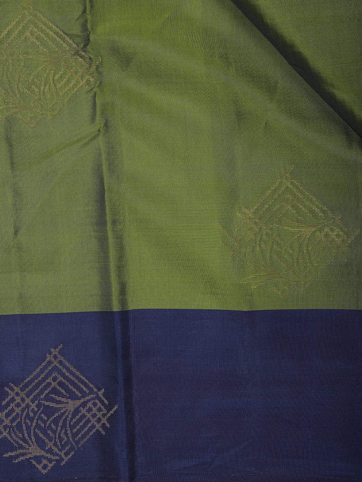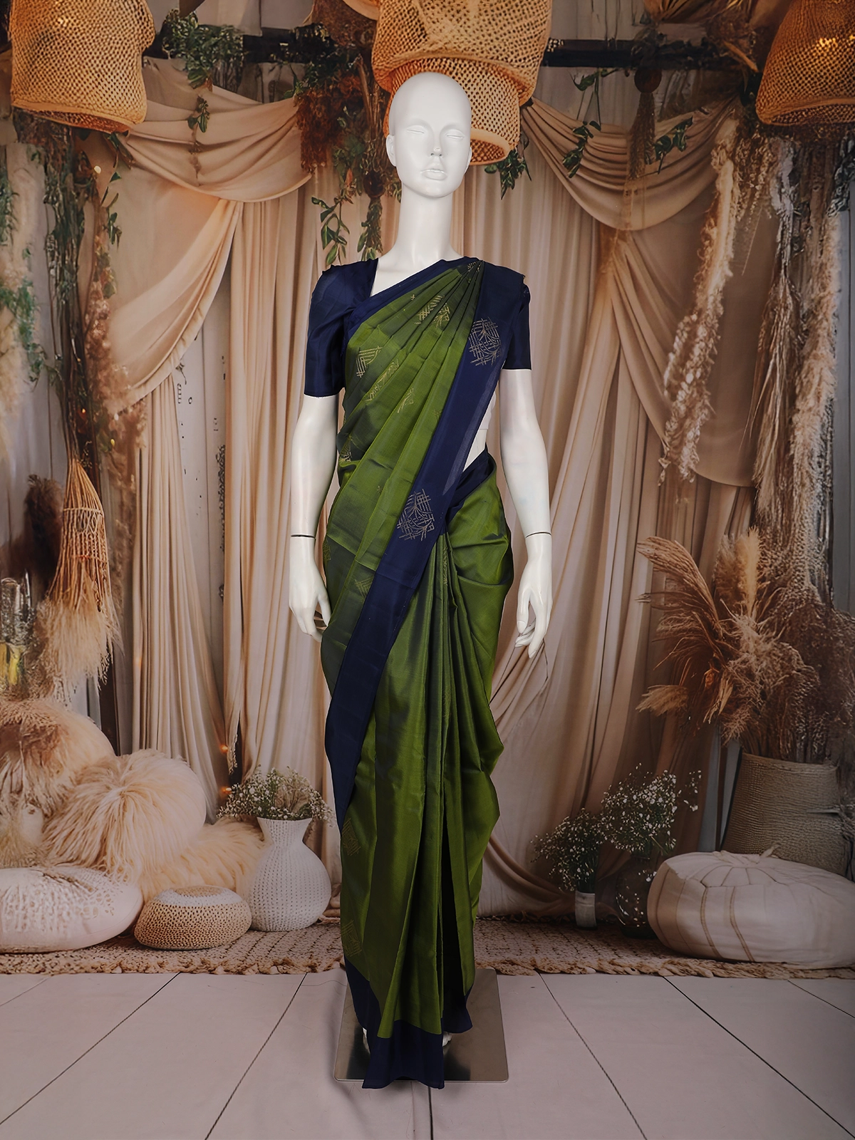 Deep Olive Green Butta Design Soft Silk Saree with Contrast Border