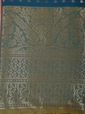 Deep Peacock Teal Blue Butta Zari Woven Design Semi Silk Saree with Contrast Floral Border
