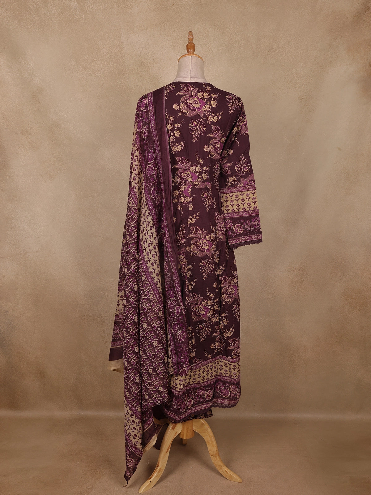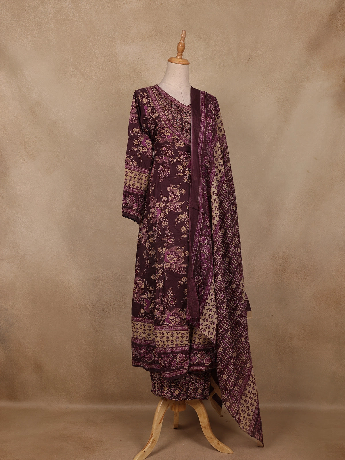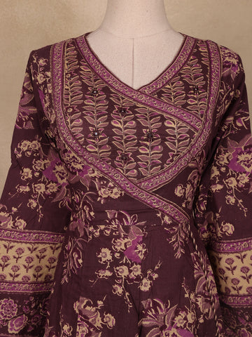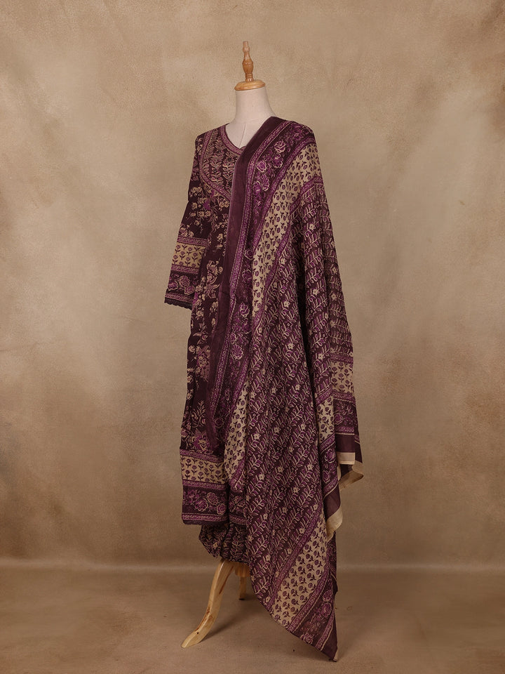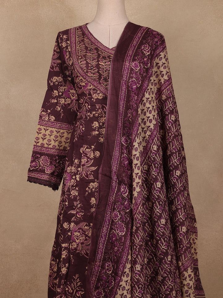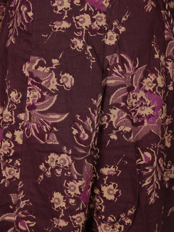 Deep Plum Floral Printed Cotton Salwar Suit with Dupatta
