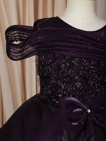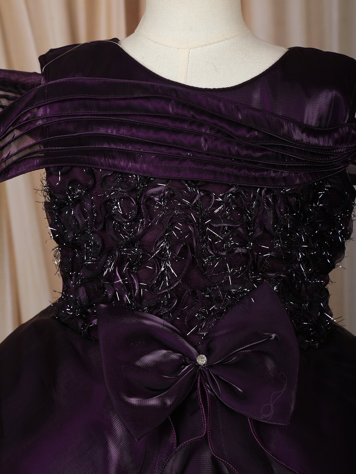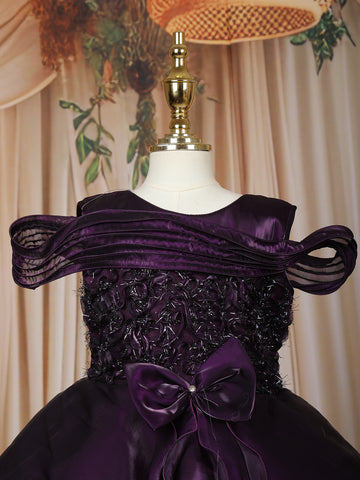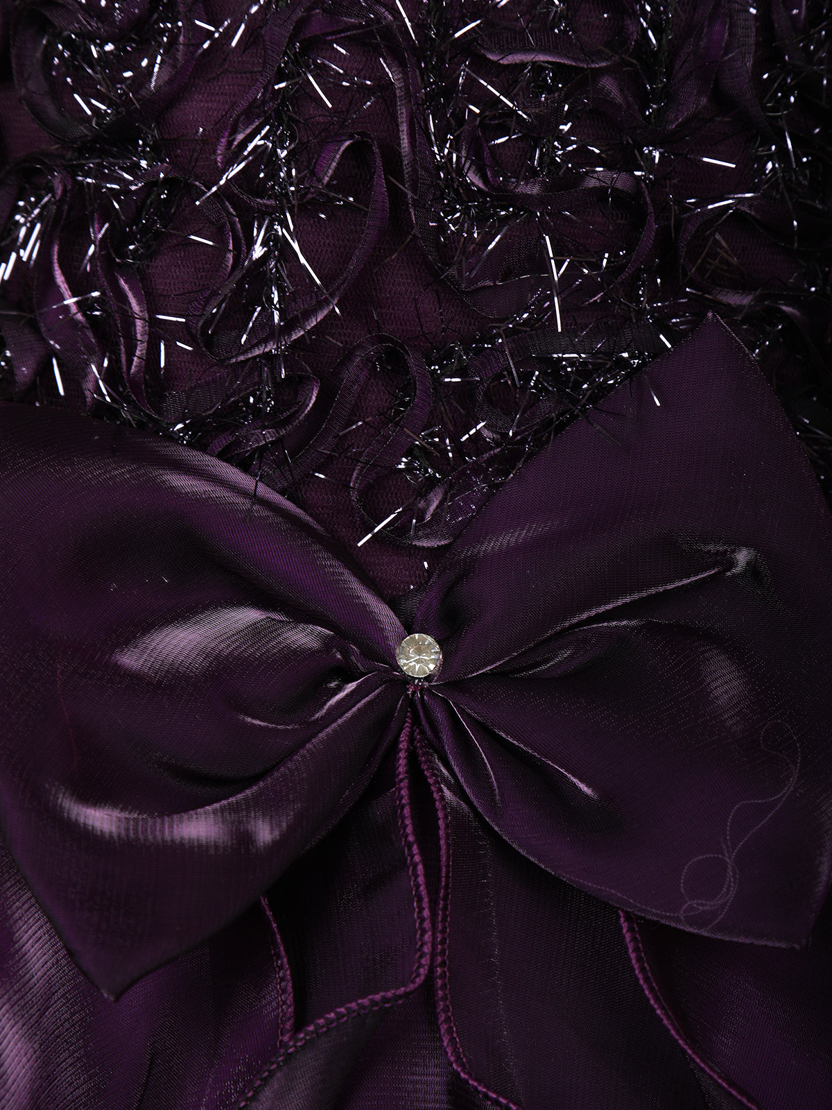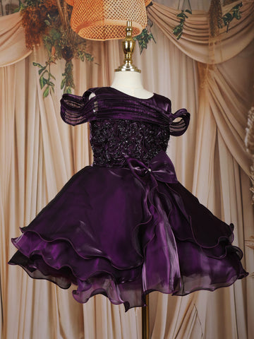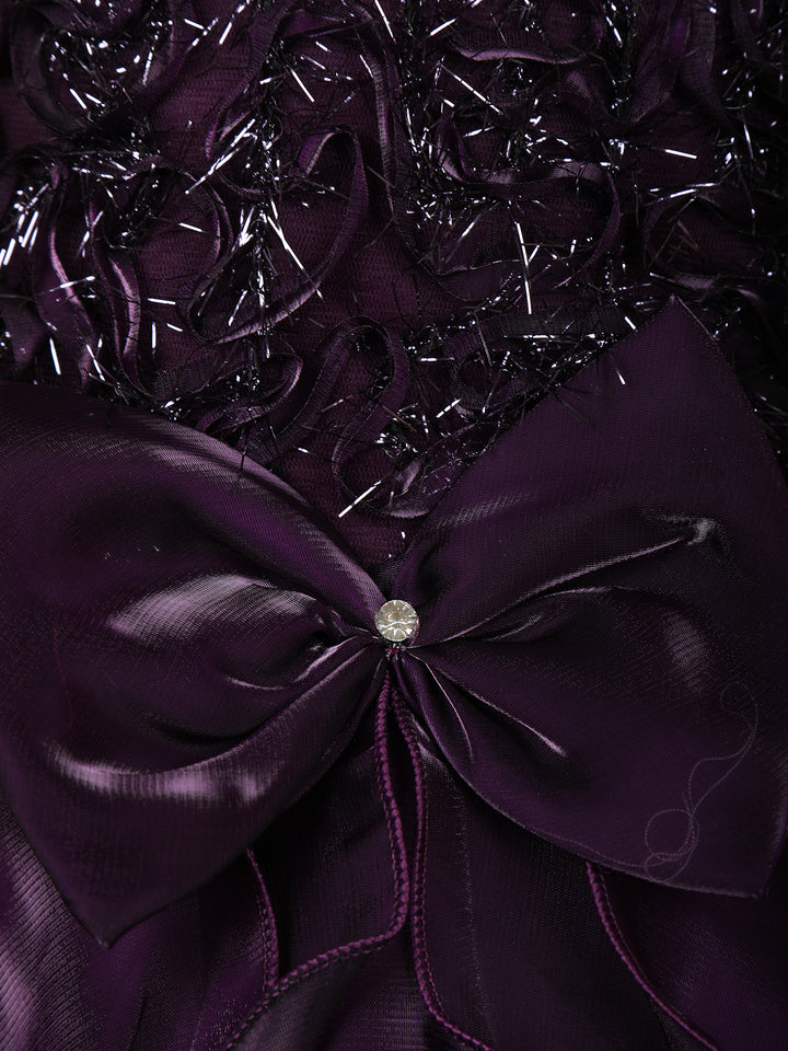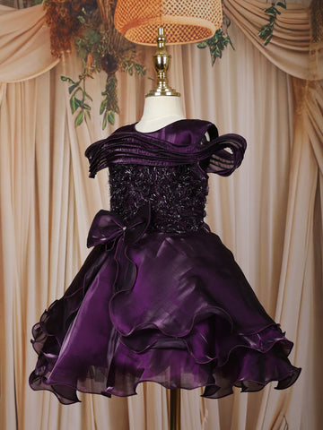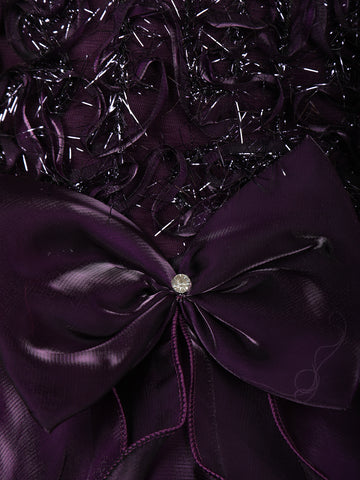 Deep Plum Layered Design Organza Party Frock With Bow Detailing