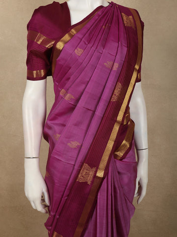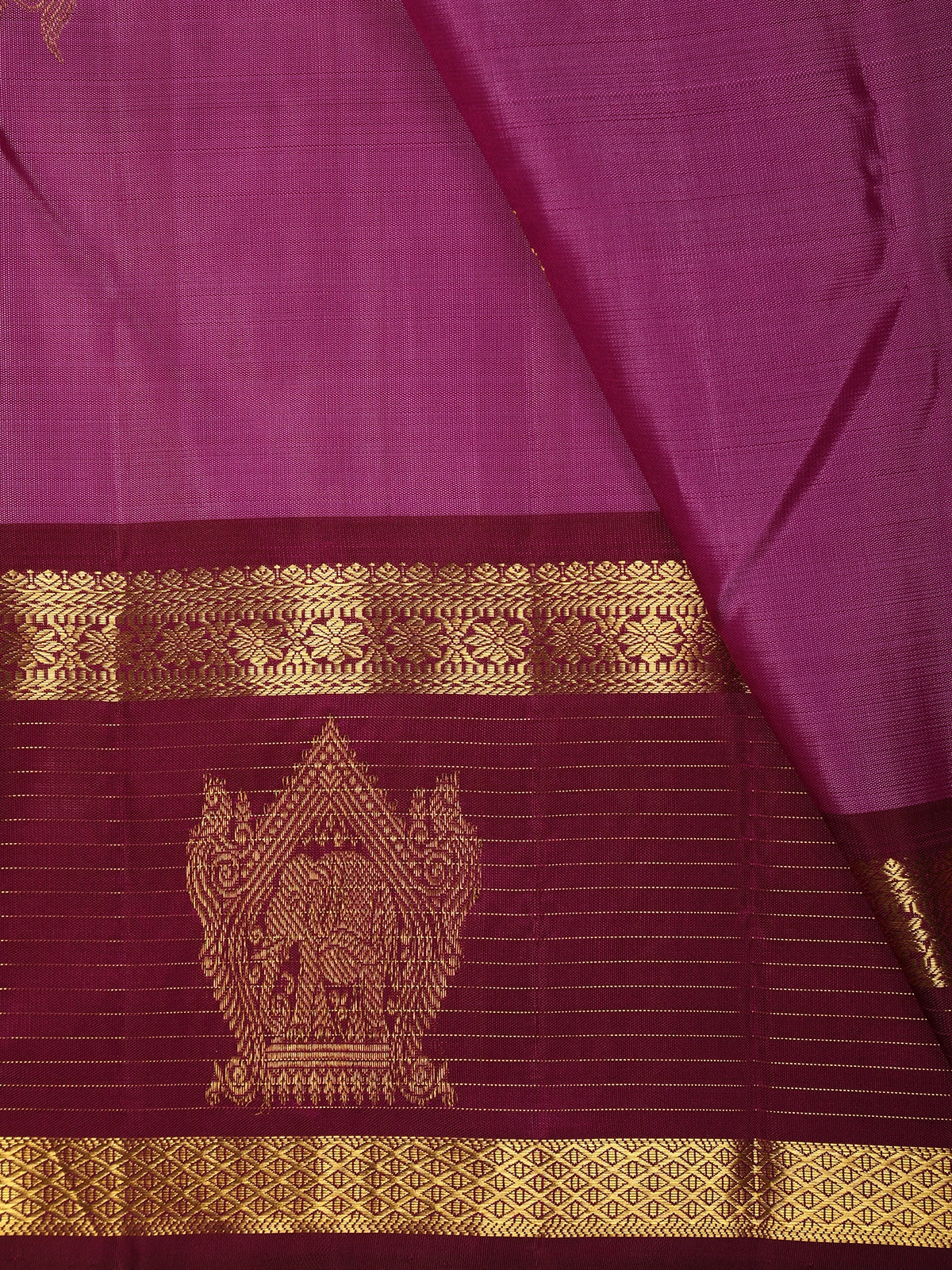 Deep Plum Purple Butta Zari Woven Design Pure Kanchipuram Silk Saree with Contrast Ornamental Zari Border