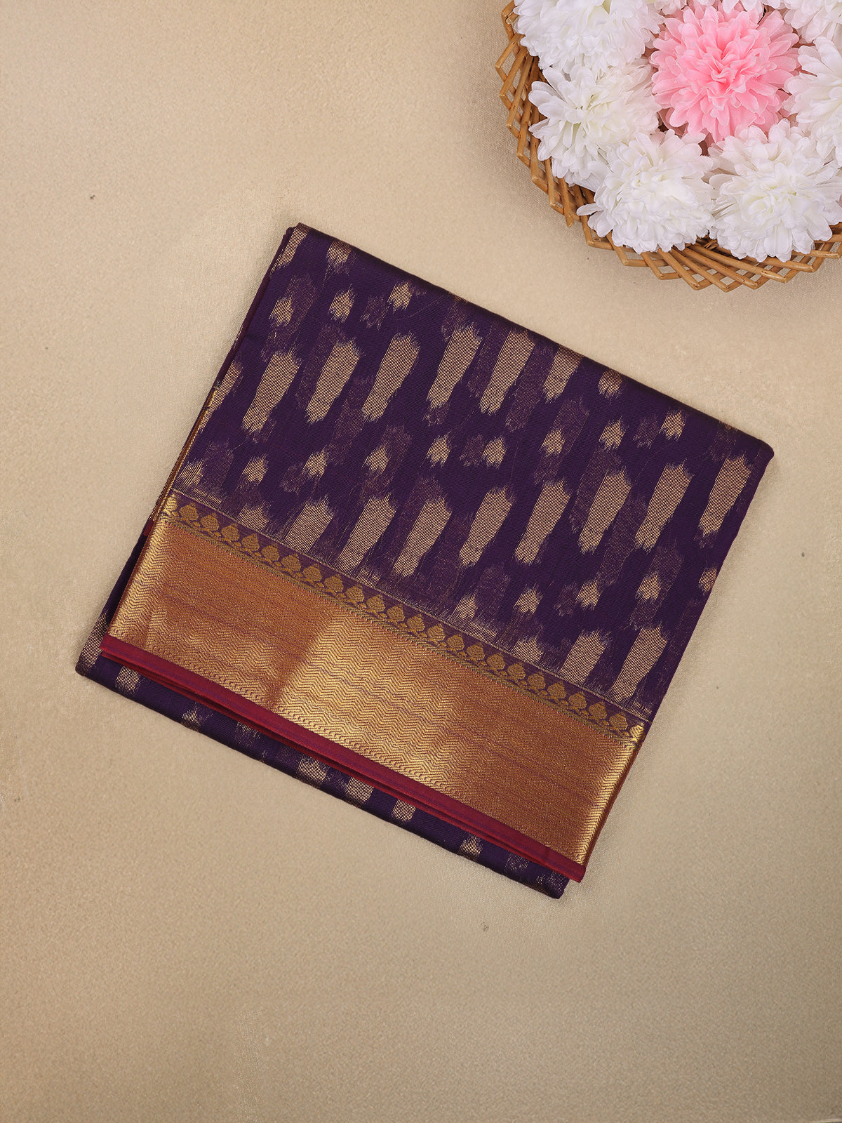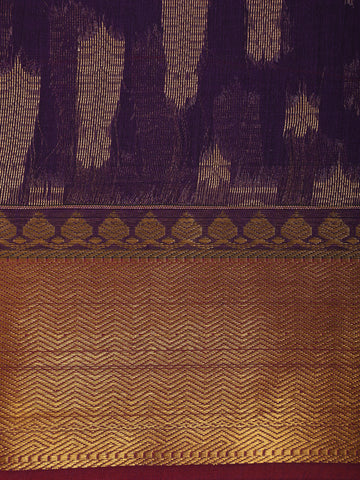 Deep Purple Abstract Zari Woven Design Silk Cotton Saree with Contrast Border