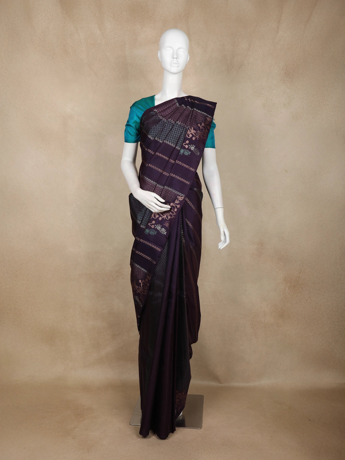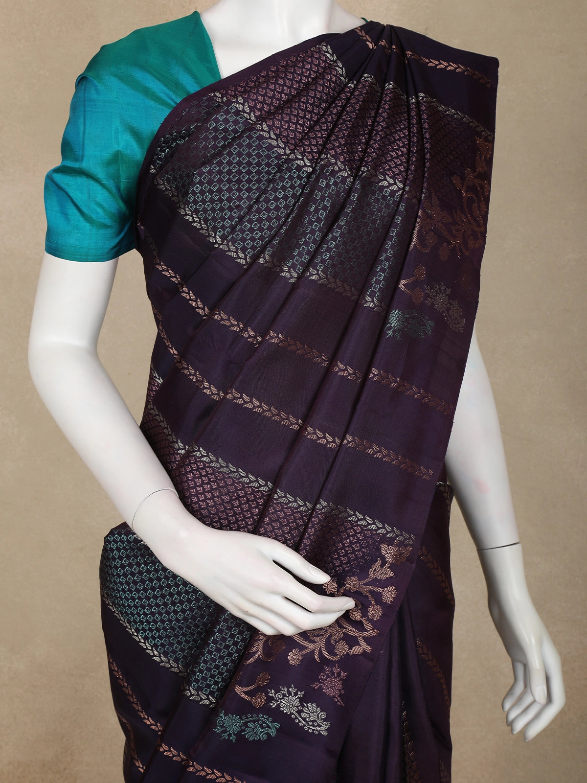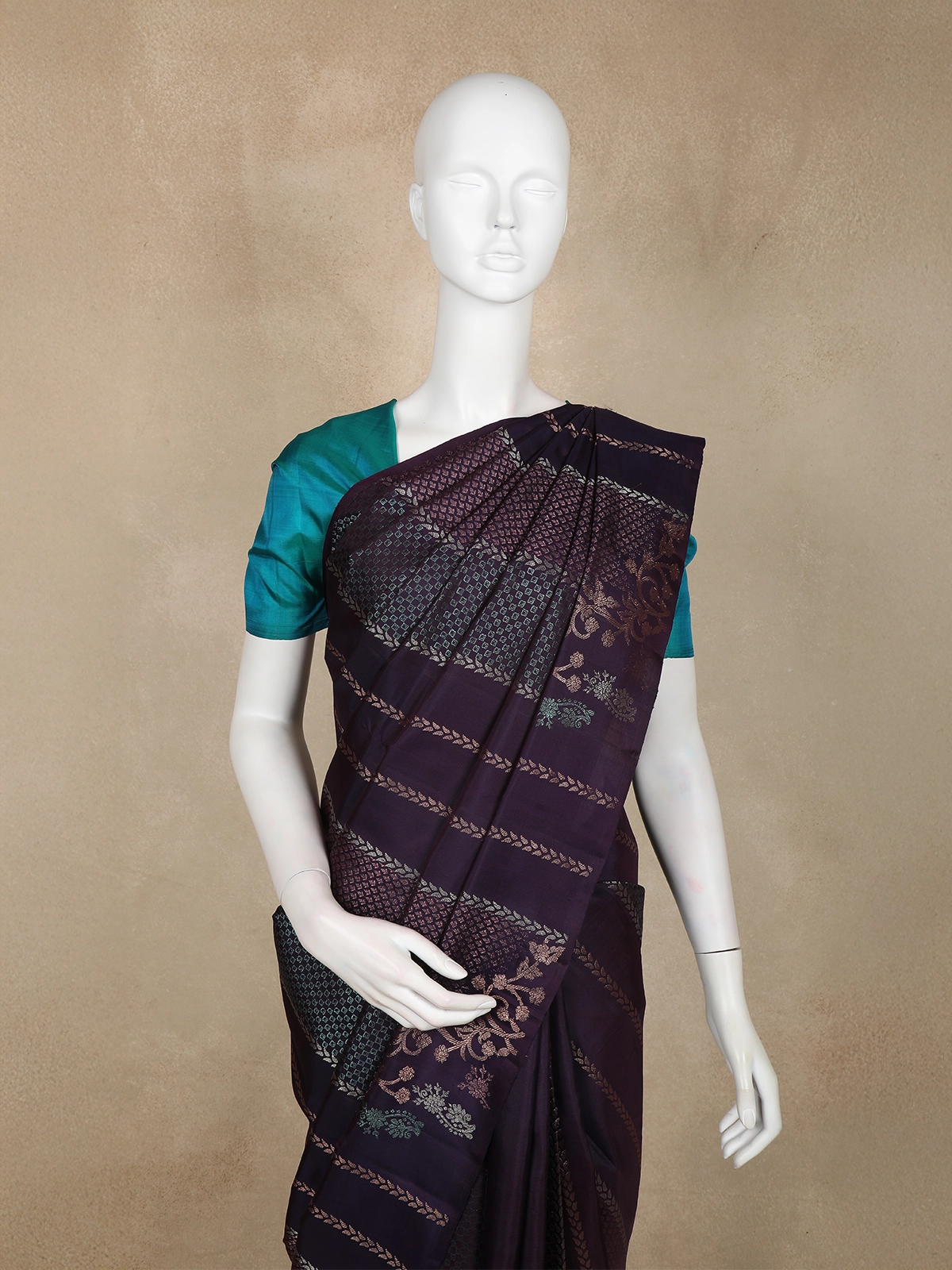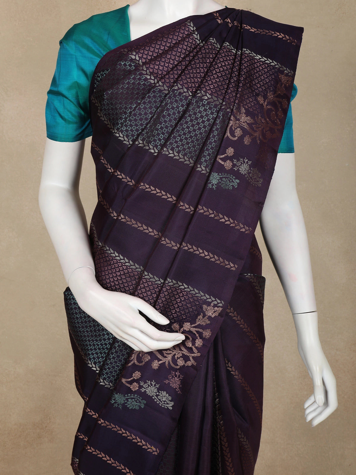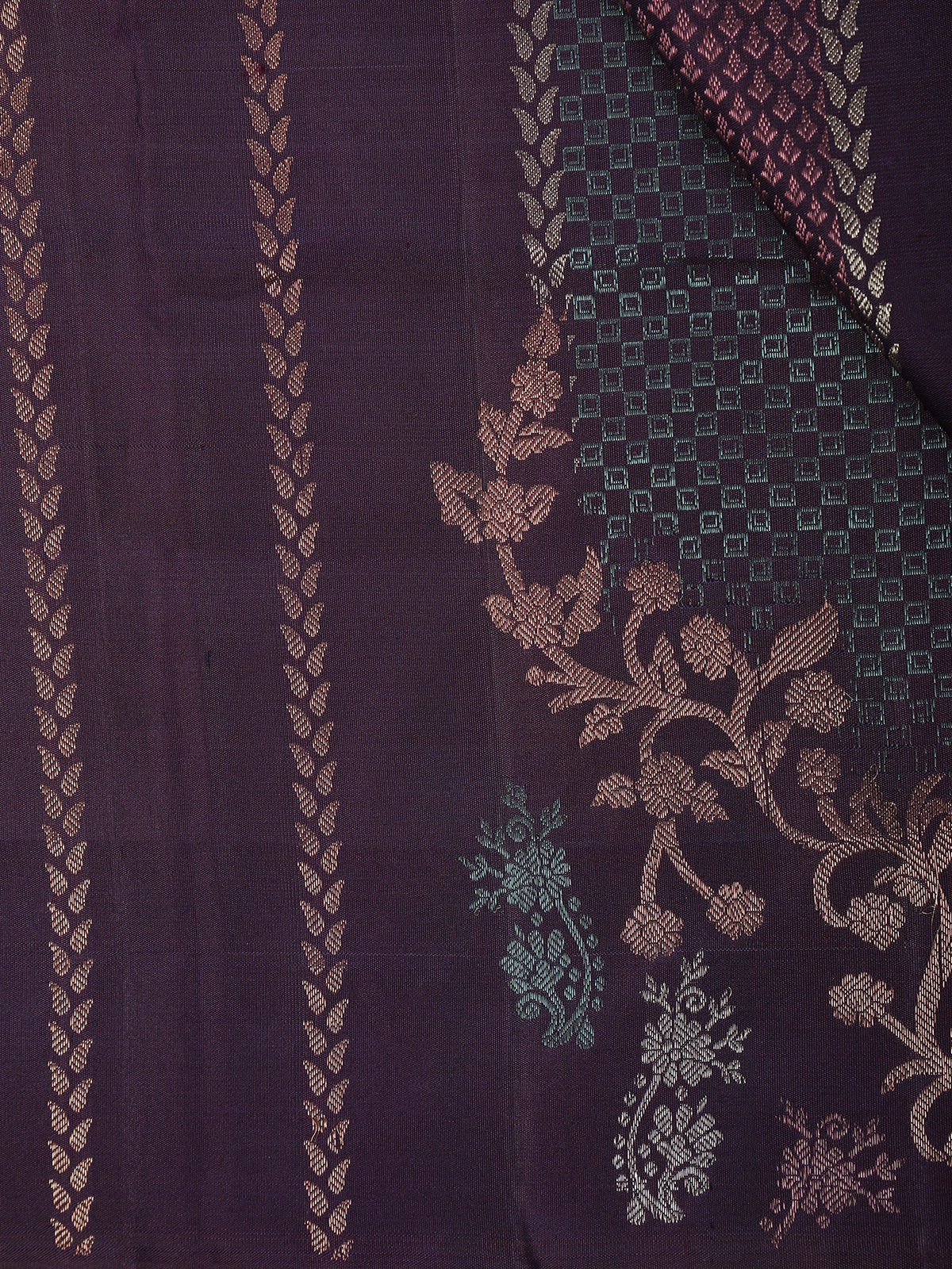 Deep Purple Floral Design Kanchipuram Silk Saree