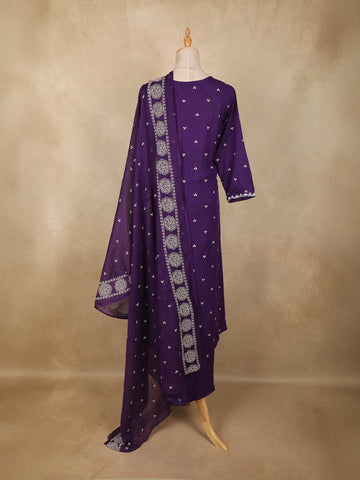 Deep Purple Floral Embroidered Design Cotton Anarkali Salwar Suit with Dupatta