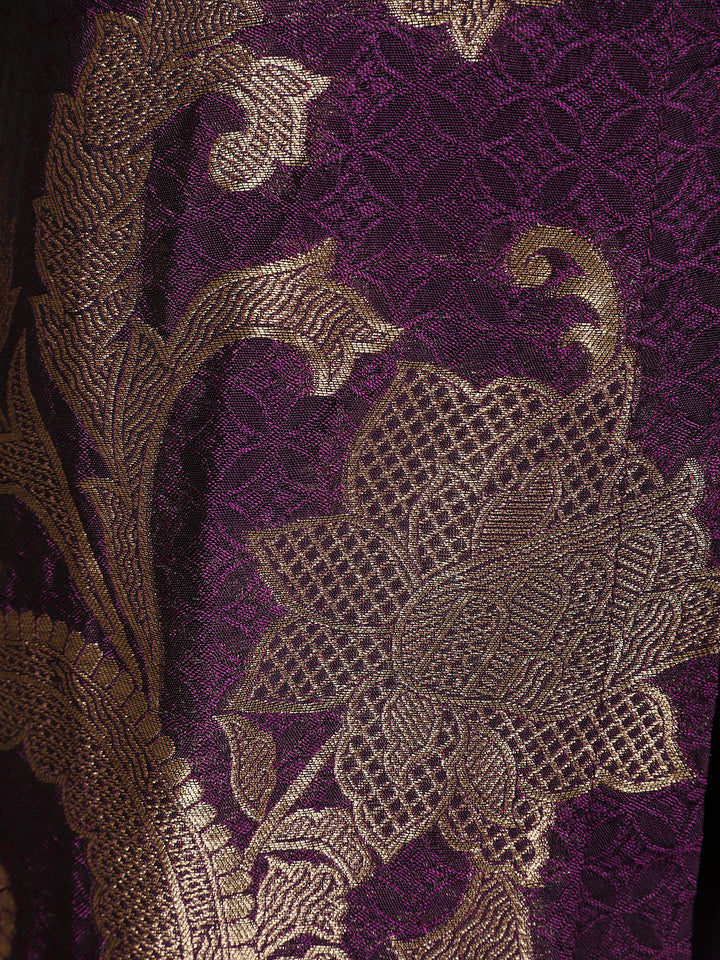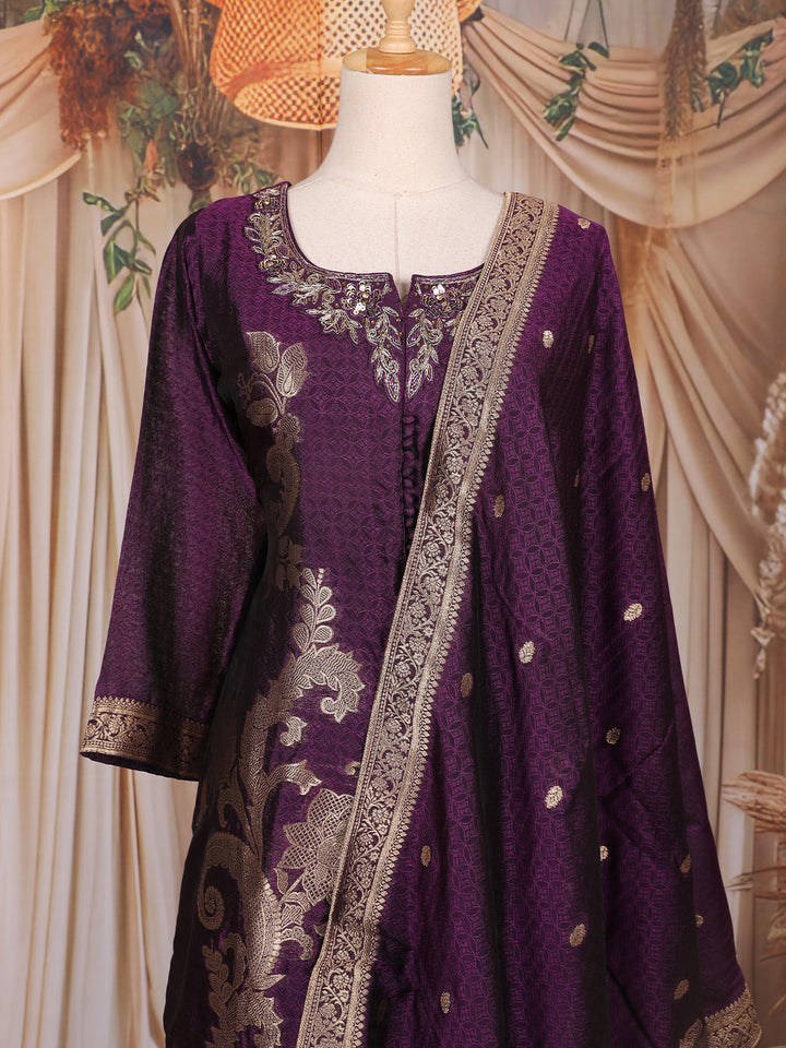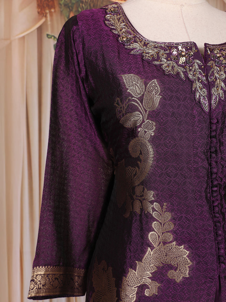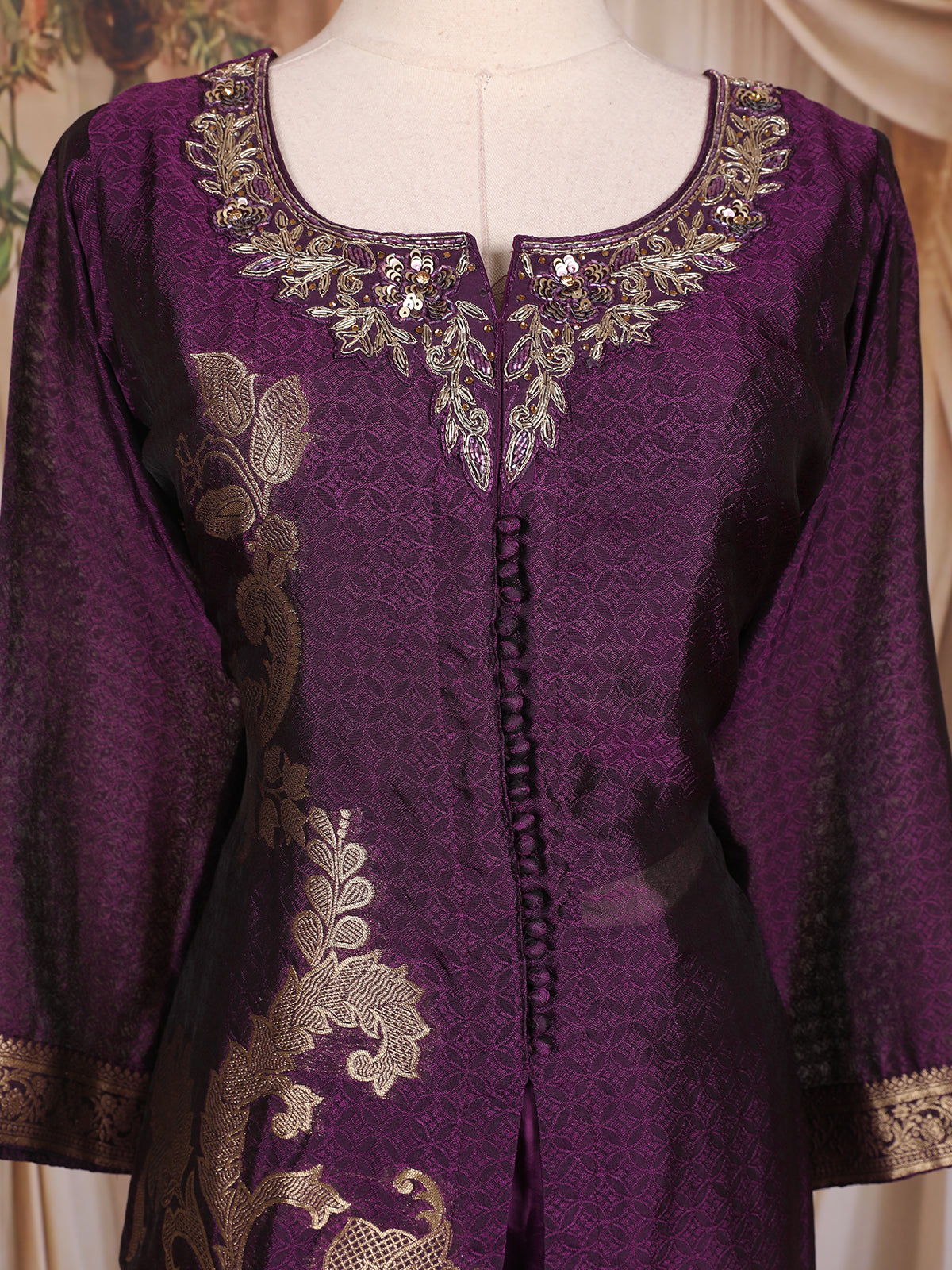 Deep Purple Floral Embroidered Tussar Palazzo Suit