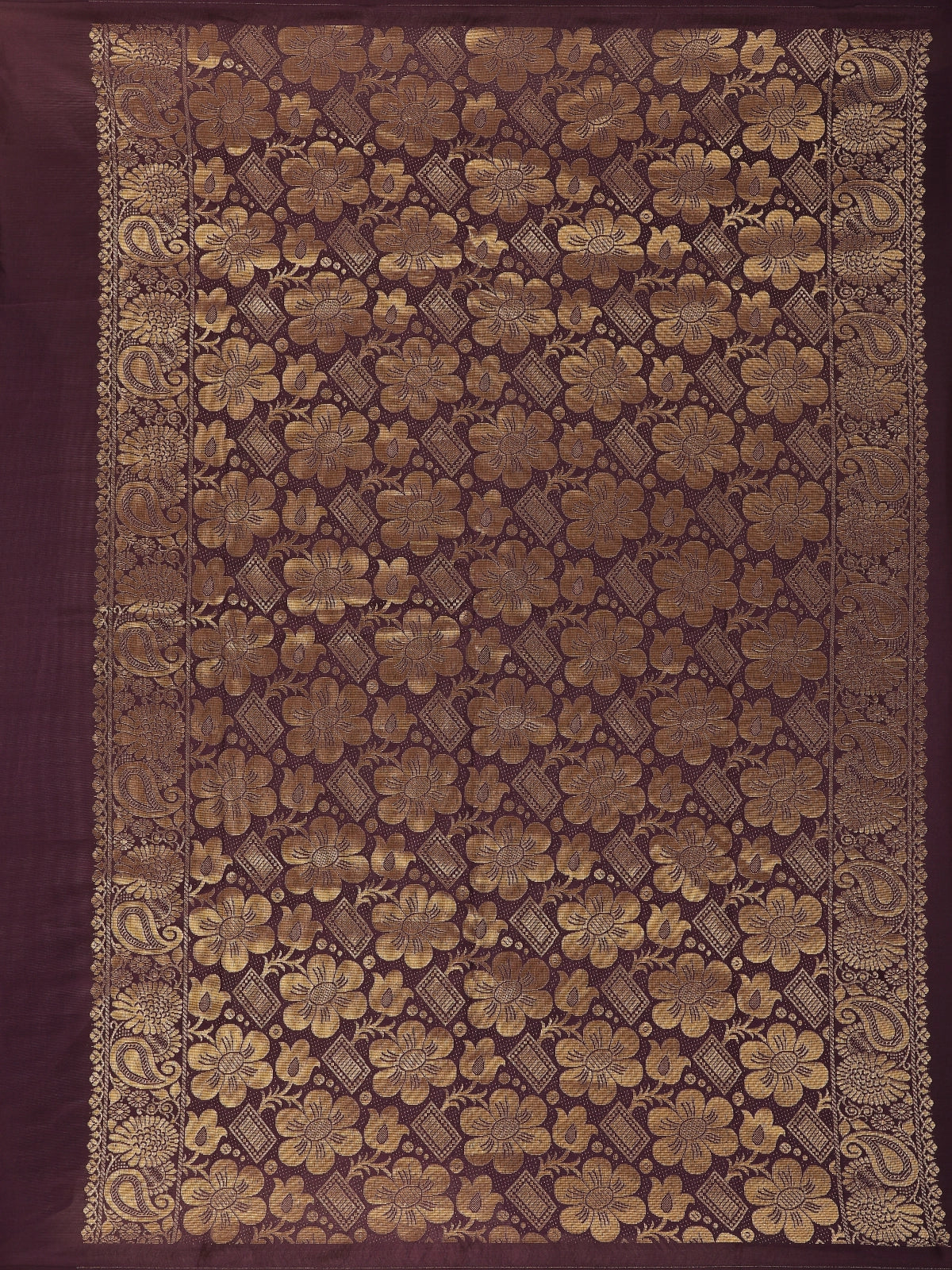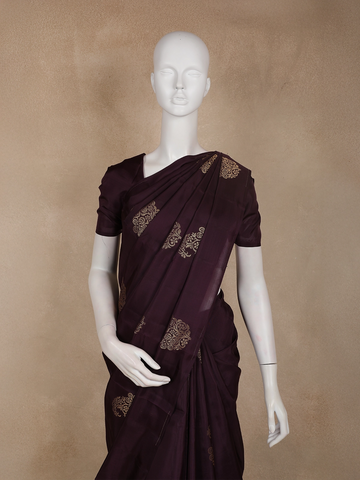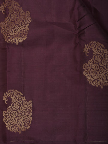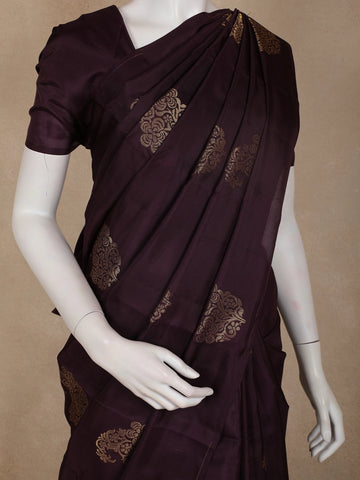 Deep Purple Paisley Butta Design Soft Silk Fancy Wear Saree with Self Border