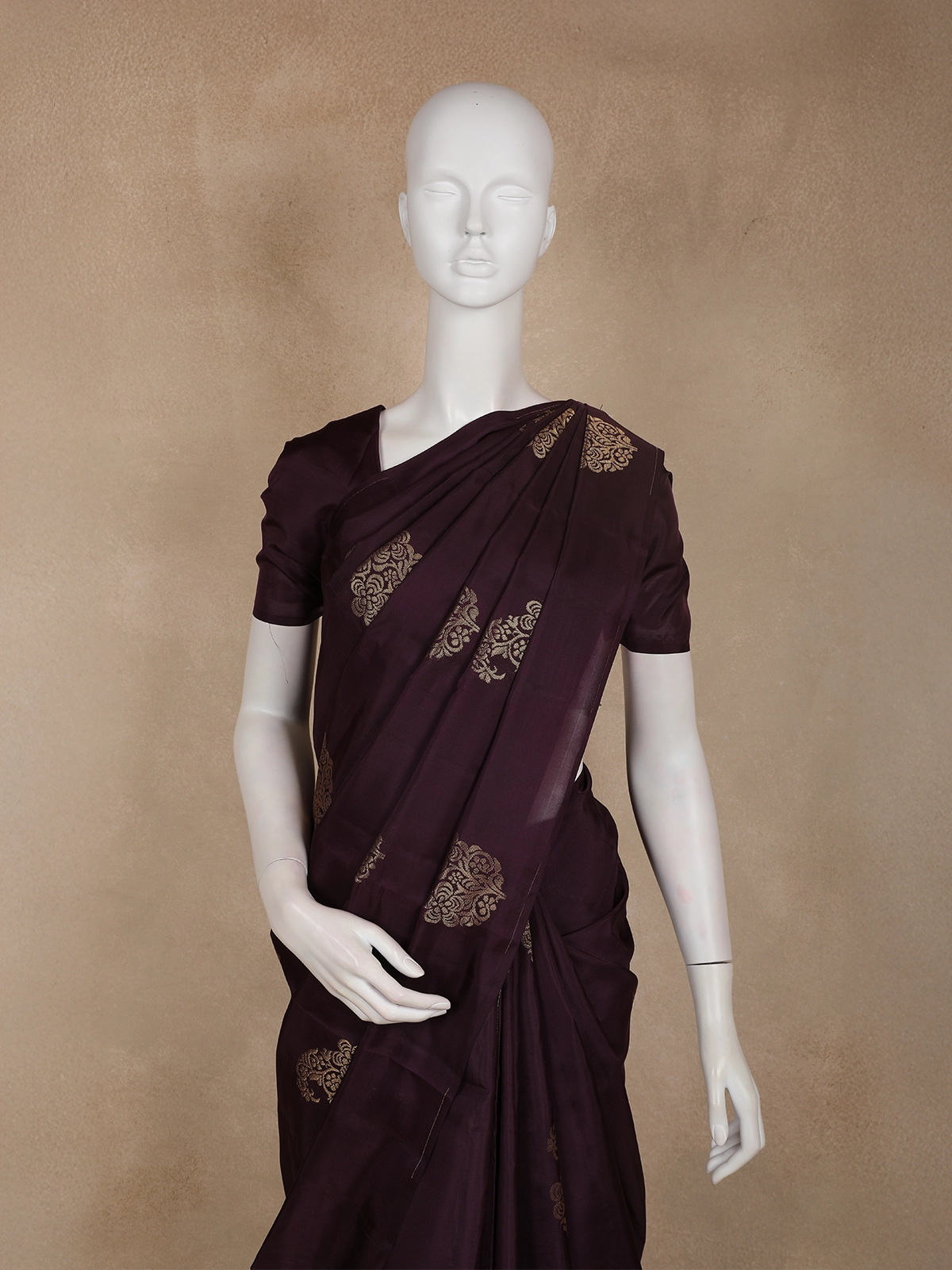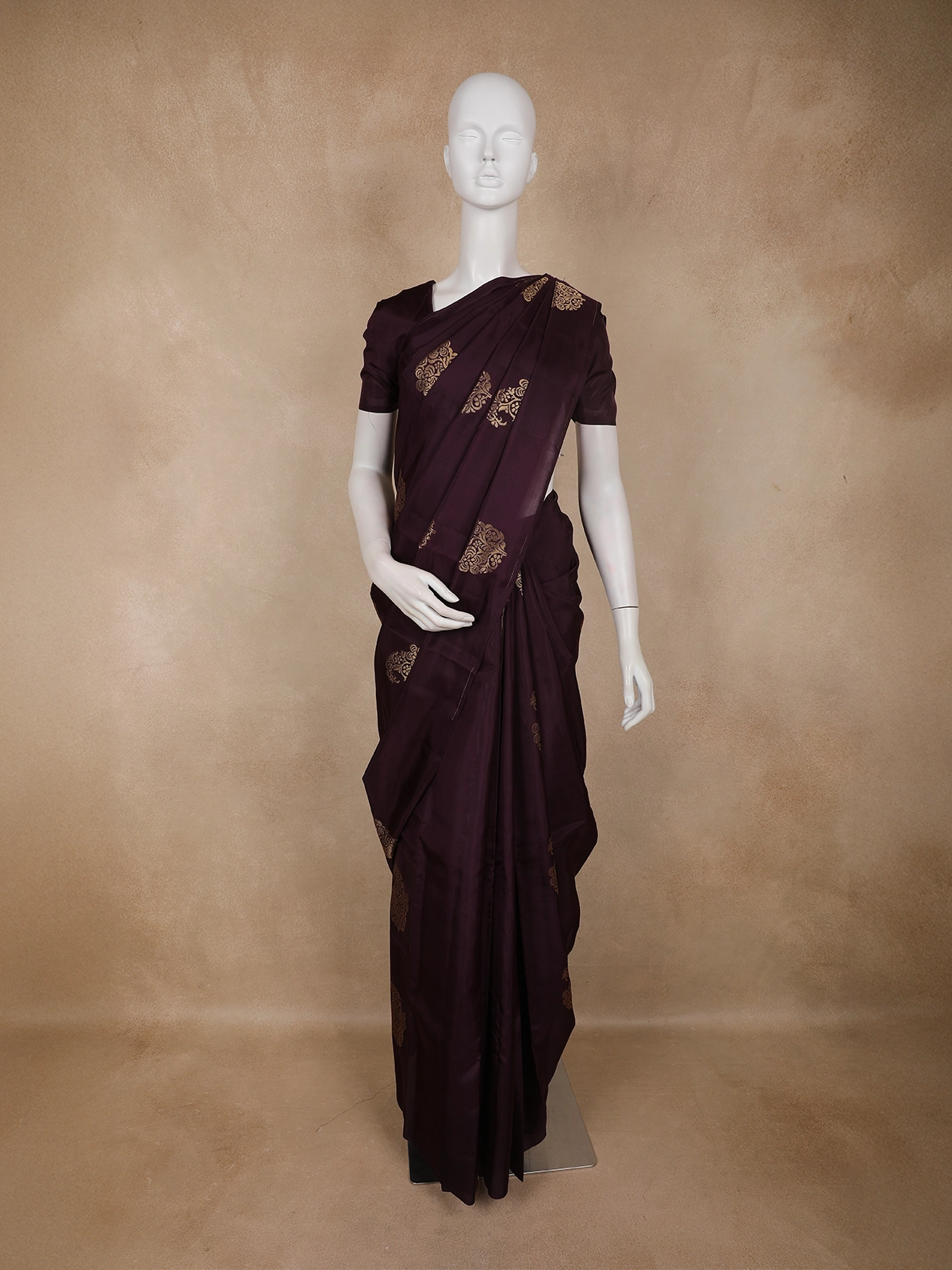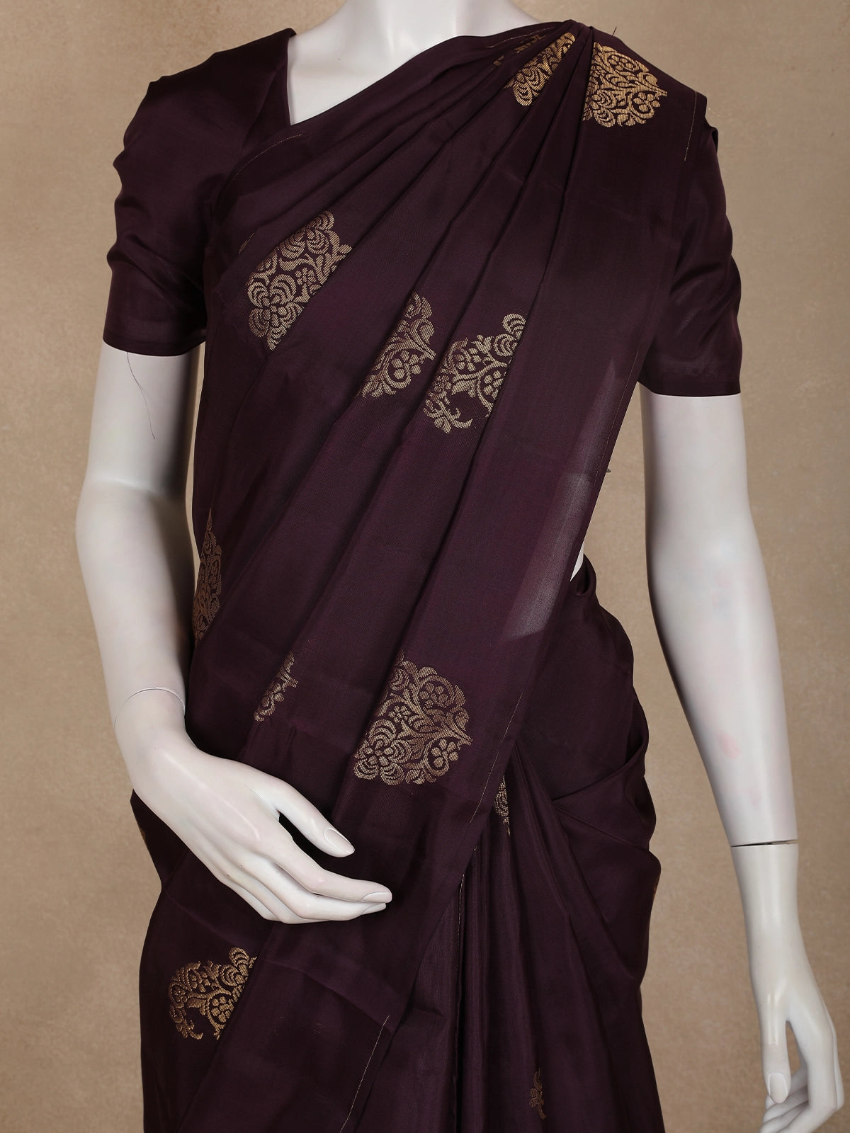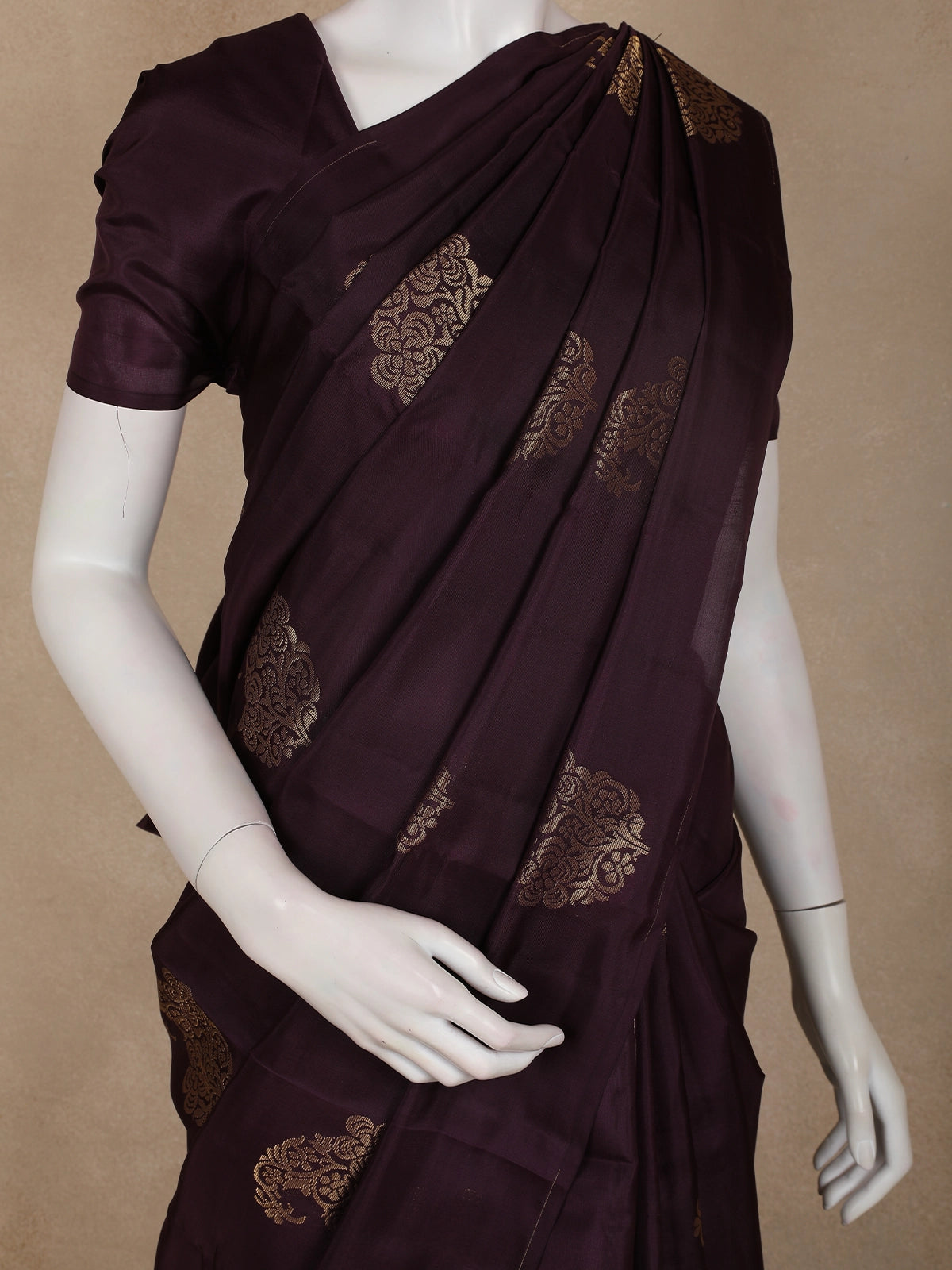 Embrace understated elegance with this Deep Purple Paisley Butta Design Soft Silk Fancy Wear Saree, crafted for those who appreciate refined traditional style. The rich deep purple base is adorned with delicately woven paisley butta motifs in subtle gold tones, lending the saree a graceful sheen and timeless charm.