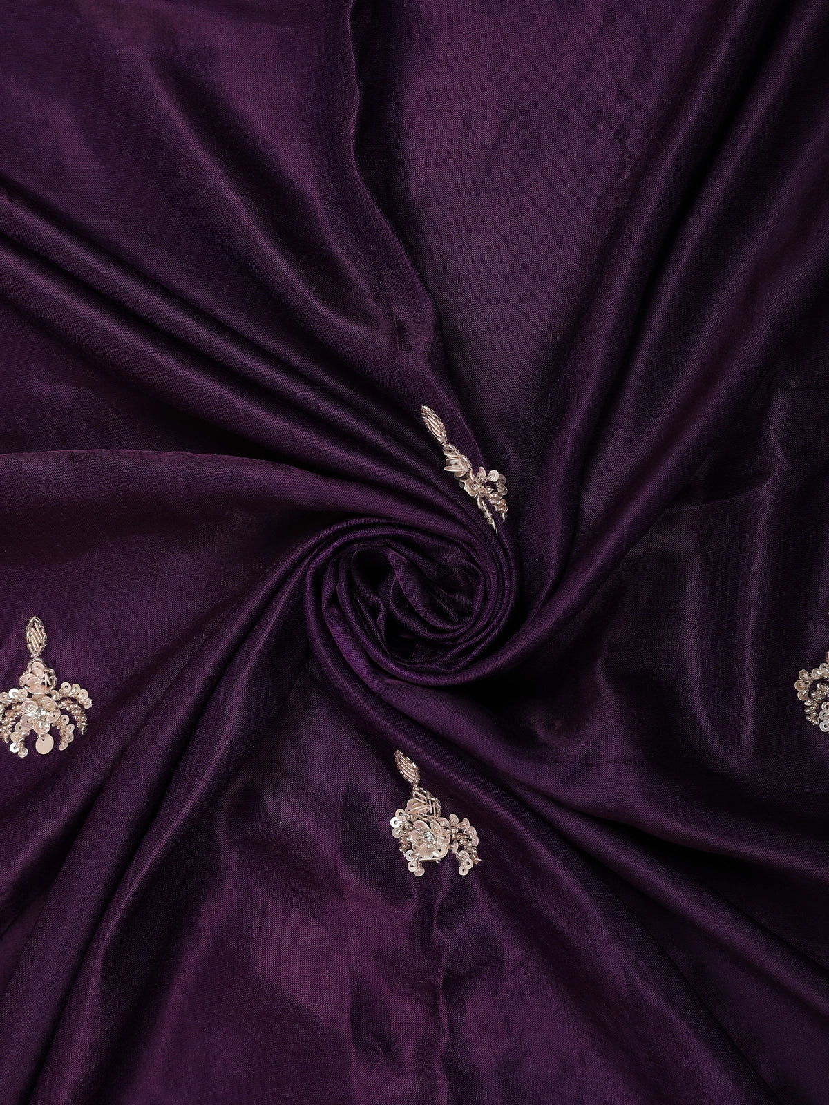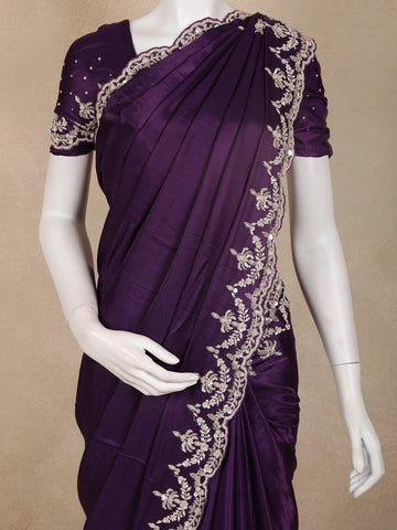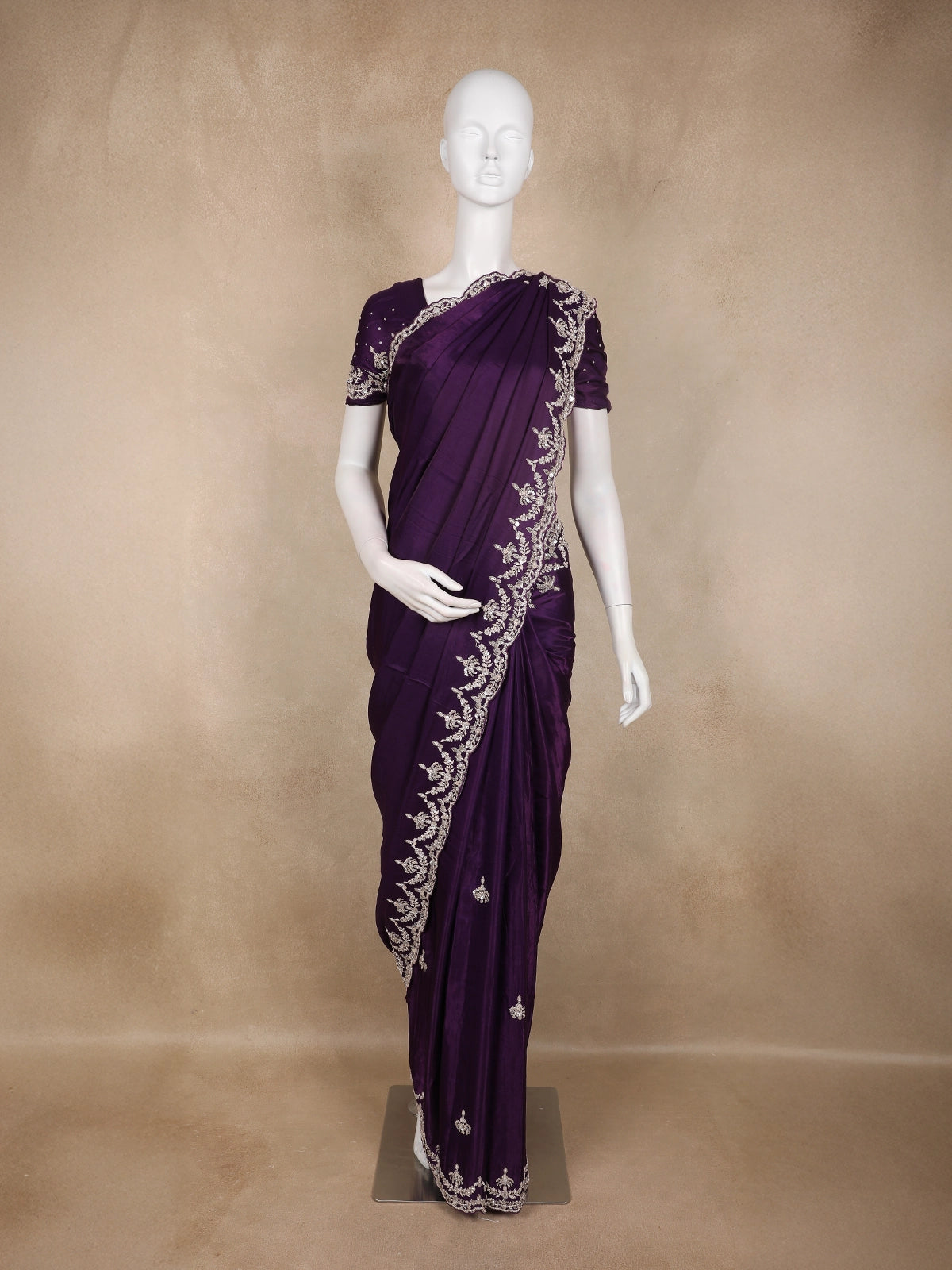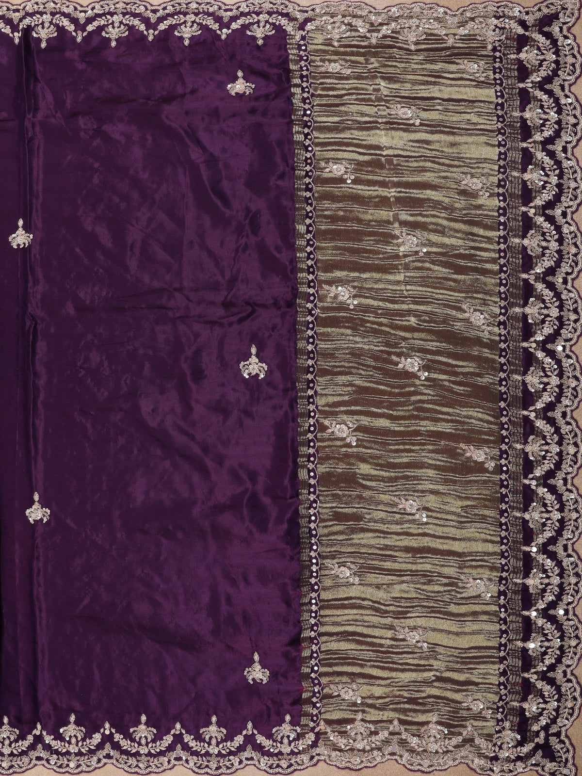 Deep Purple Sequins and Beads Embroidered Design Space Silk Party Wear Saree