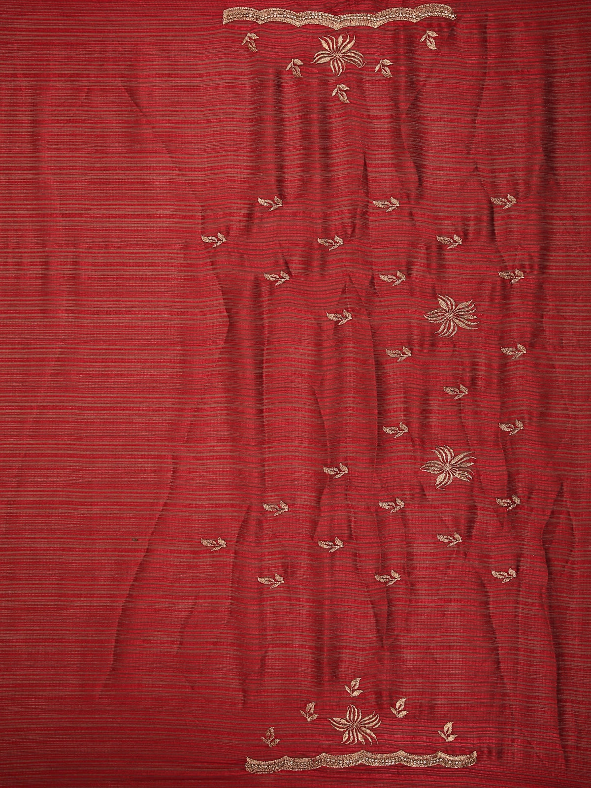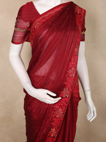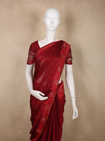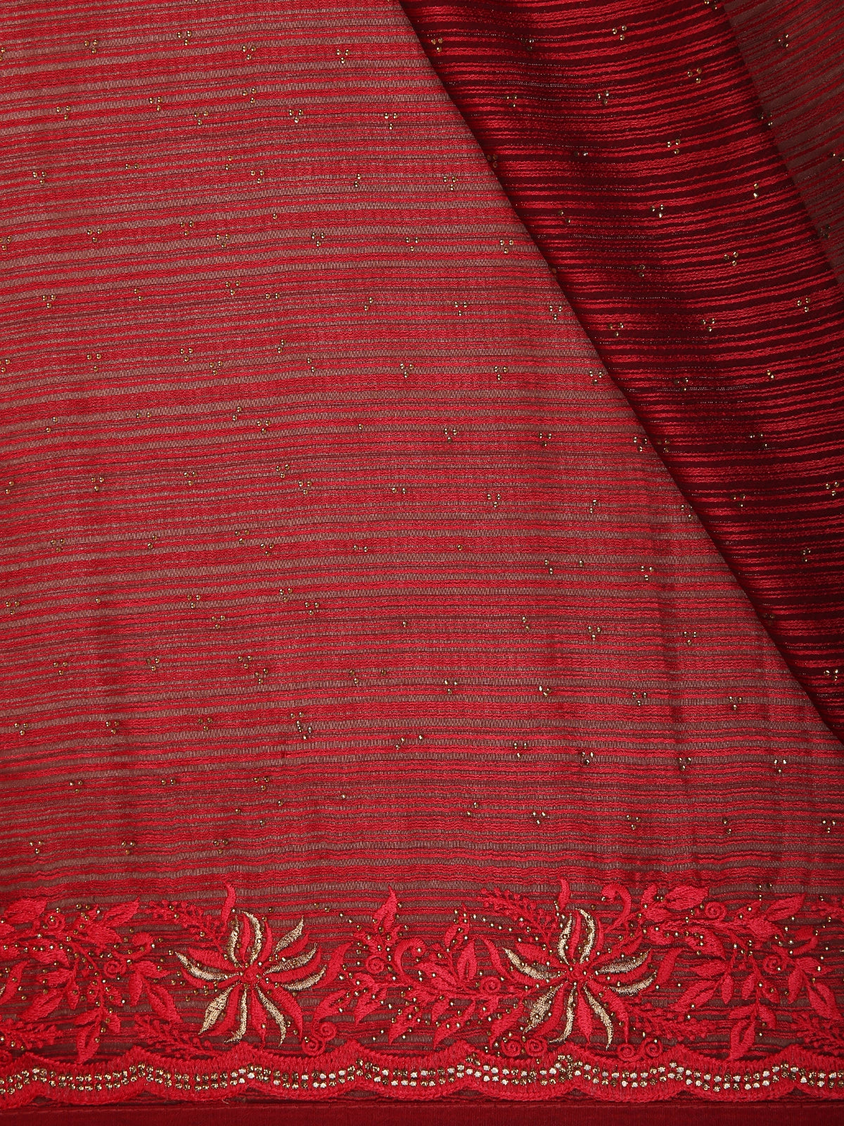 Deep Regal Crimson Red Stone Embellished Design Organza Saree