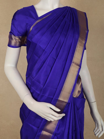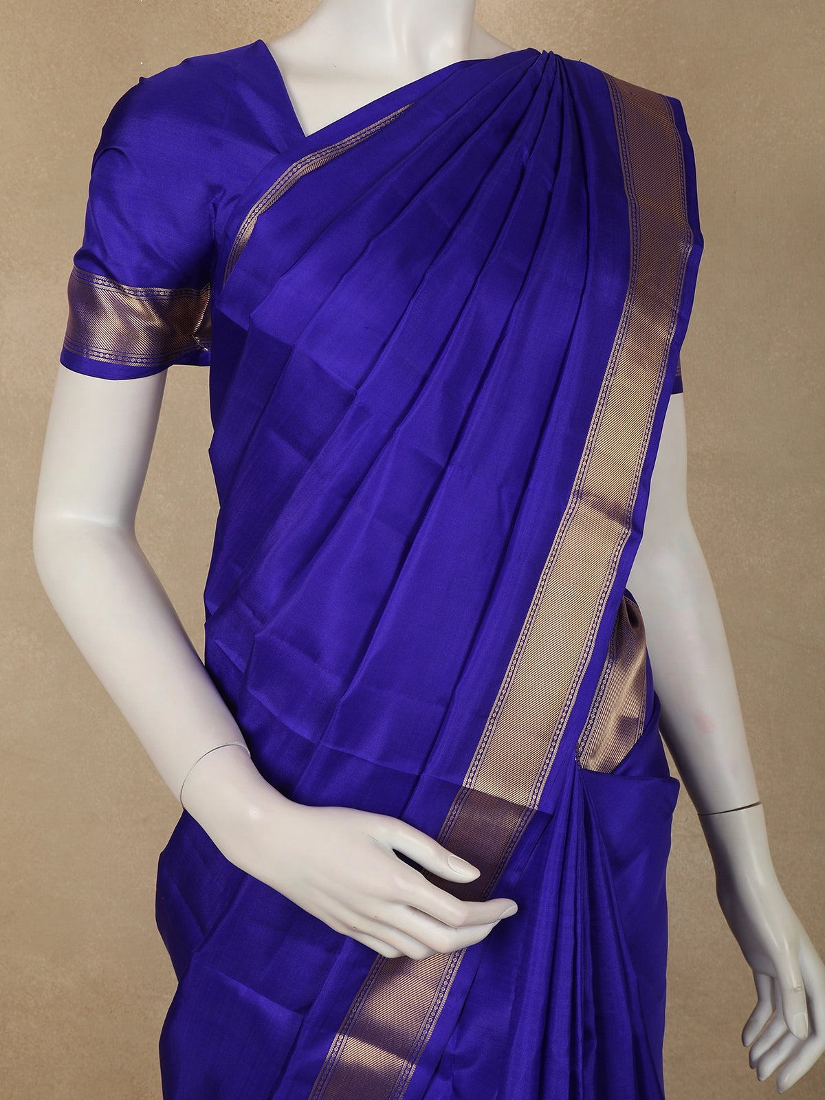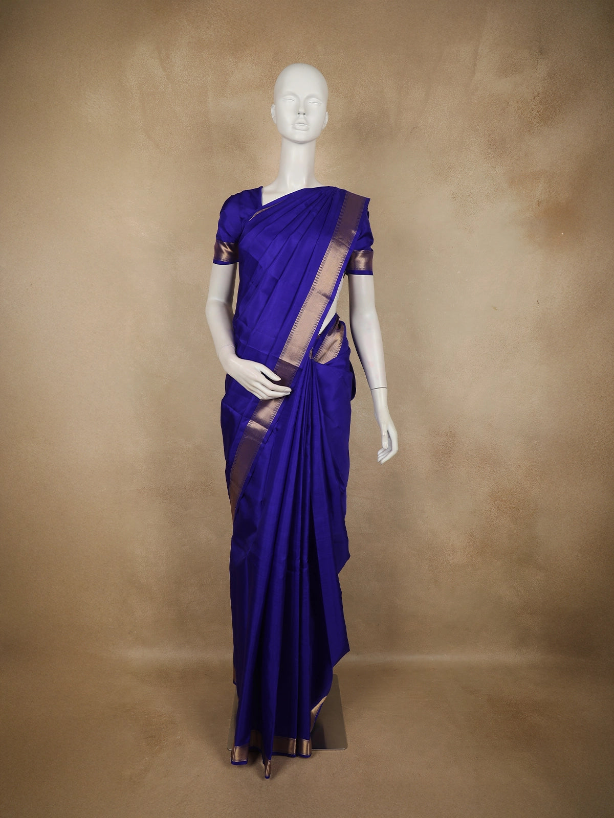 Deep Royal Blue Solid Woven Design Pure Kanchipuram Silk Saree with Zari Border