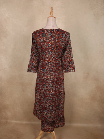 Crafted from breathable cotton fabric, this suit ensures all-day comfort while maintaining a graceful silhouette. The kurta is styled with a flattering round neckline and three-quarter sleeves, making it ideal for both casual and semi-formal occasions. The coordinated floral print continues seamlessly onto the palazzo, offering a cohesive and polished appearance.