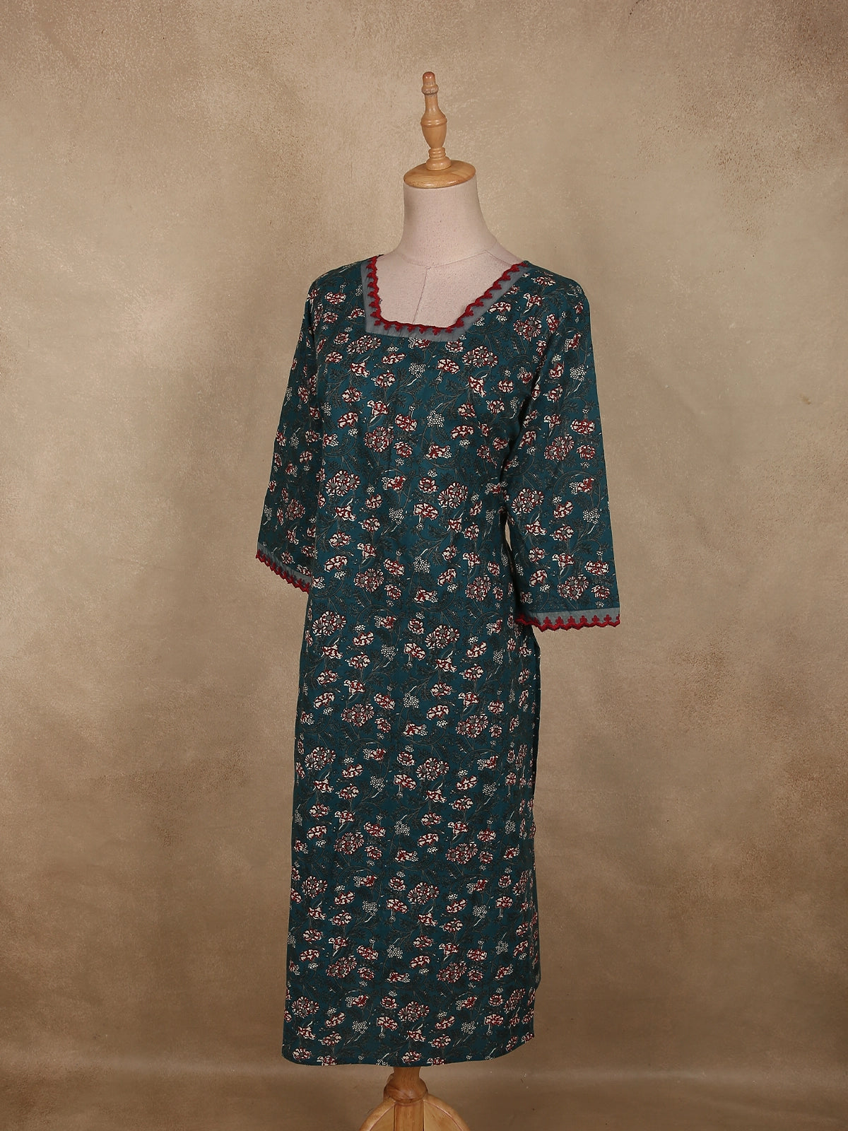 A versatile cotton kurti that effortlessly combines rich color, delicate detailing, and everyday practicality.