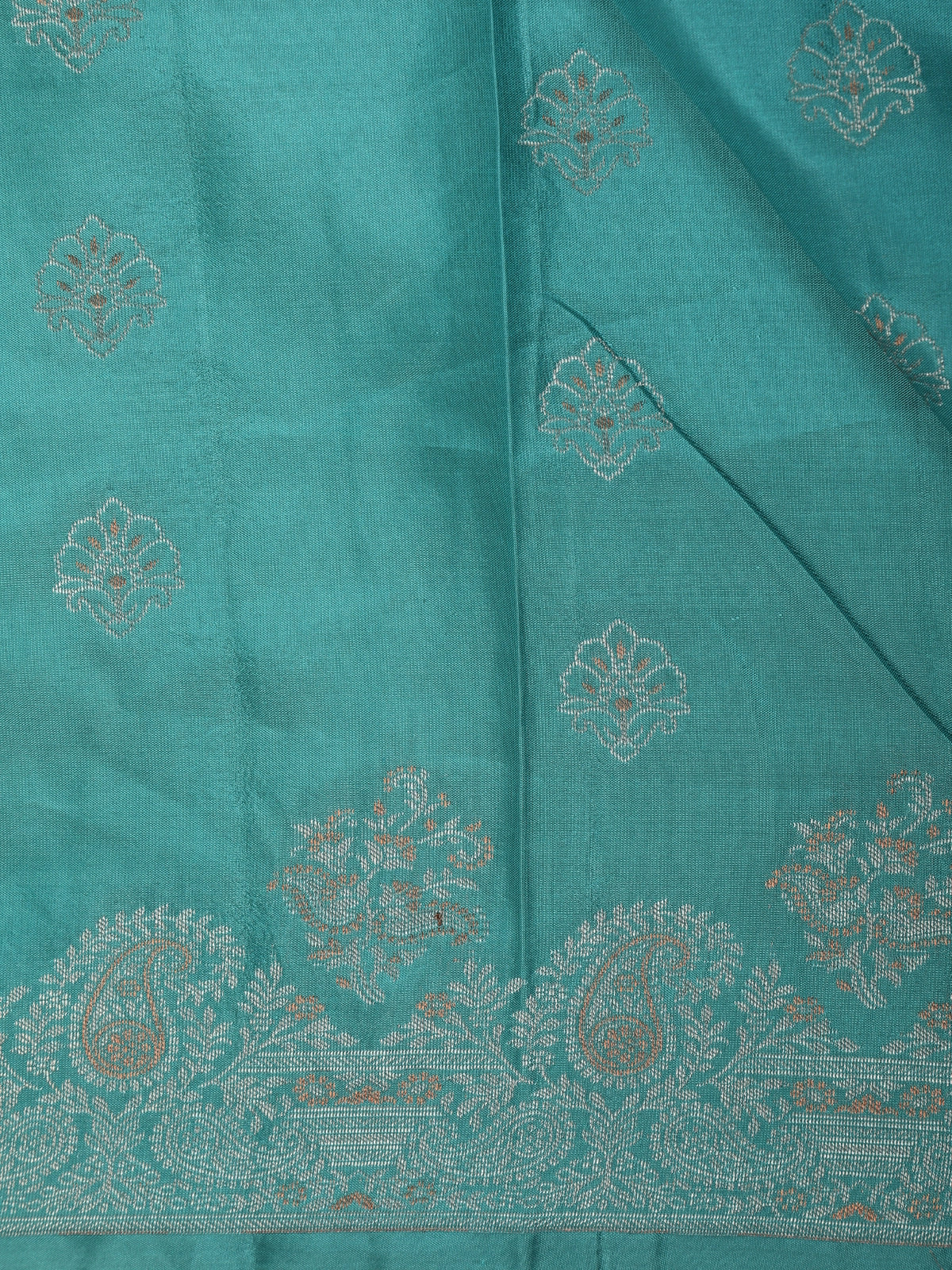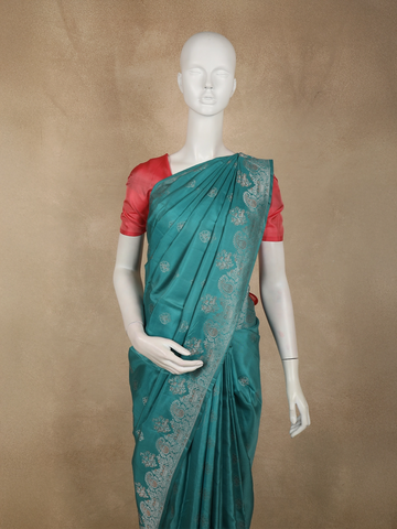 Deep Teal Blue Floral Zari Woven Design Pure Kanchipuram Silk Saree with Zari Border