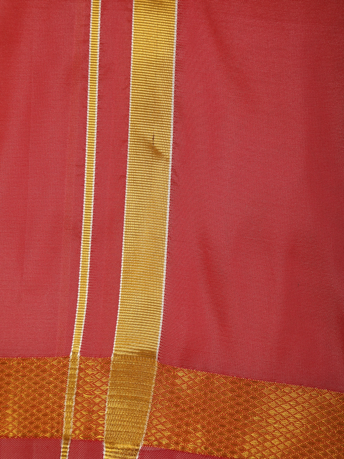 Elevate traditional elegance with this Deep Maroon Red Solid Design Unstitched Shirt and Dhoti Set, thoughtfully crafted for timeless South Indian ethnic wear. The soothing peach pink tone lends a refined, graceful appeal, making it perfect for festive occasions and traditional ceremonies.