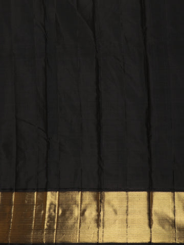 A striking contrast zari border in antique gold with dark accents frames the saree gracefully, enhancing its traditional appeal and giving it a bold, temple-inspired finish. Crafted from pure Kanchipuram silk, the saree boasts a luxurious texture, rich drape, and enduring durability.
