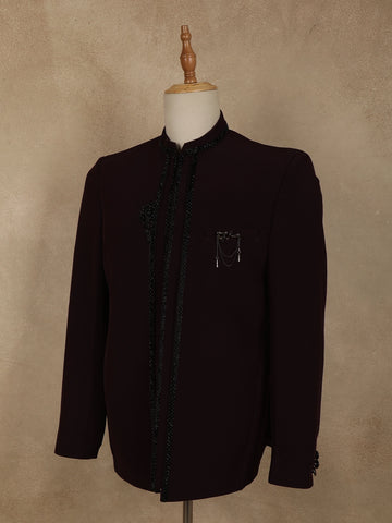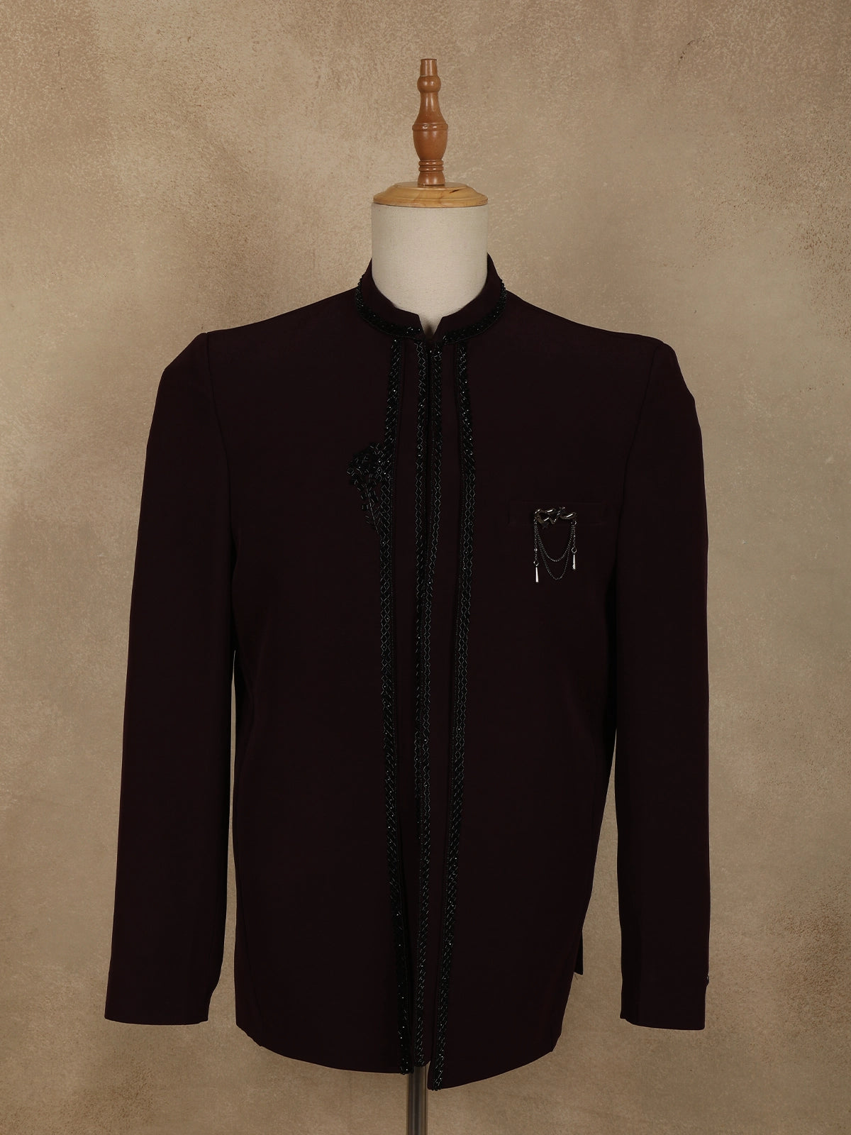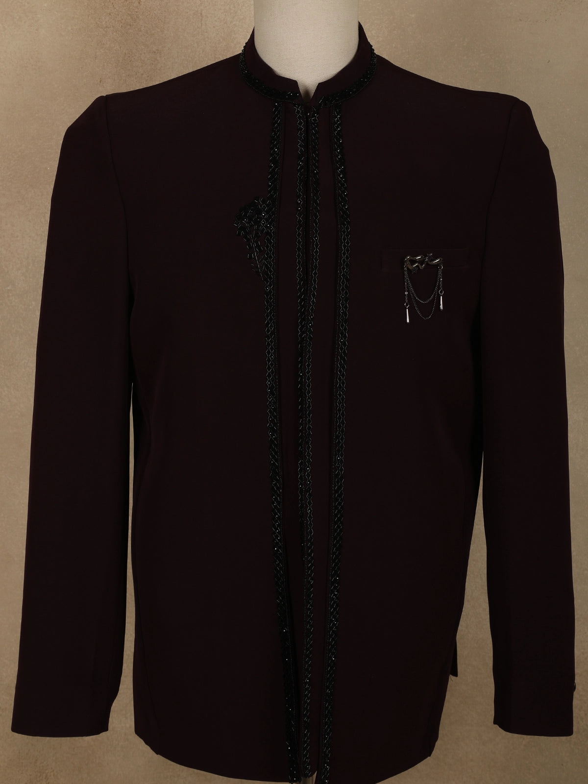 Deep Wine Heavy Beads Embroidered Design Polynosic Men's Suit