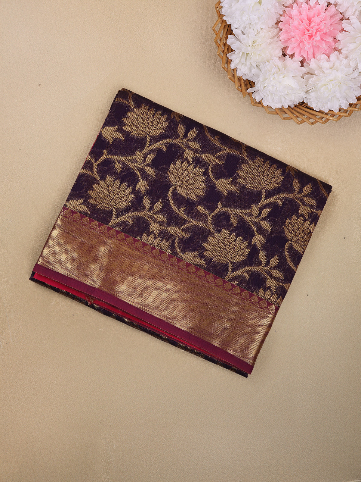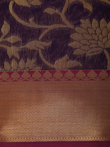 Deep Wine Purple Floral Zari Woven Design Silk Cotton Saree with Contrast Border