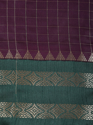 Deep Wine Purple Checked Design Soft Silk Fancy Wear Saree with Contrast Zari Border