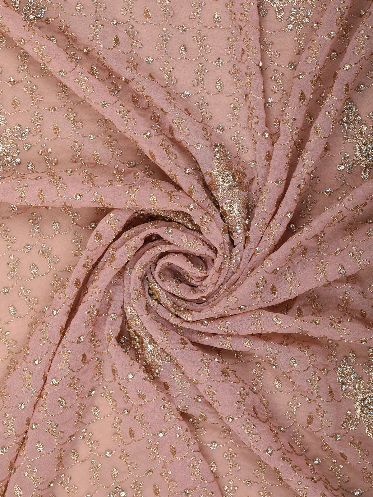 Dusty Blush Pink Floral Zari Embroidered Design Georgette designer Saree