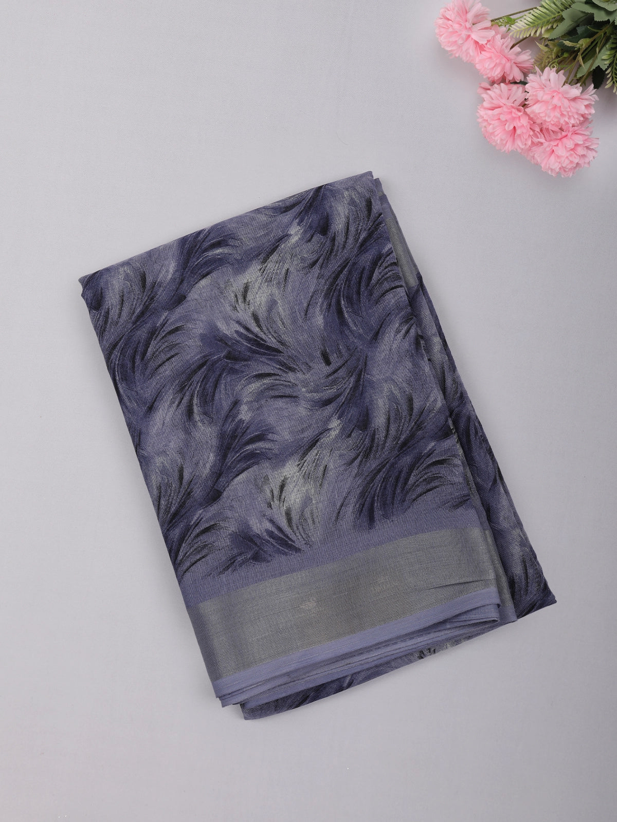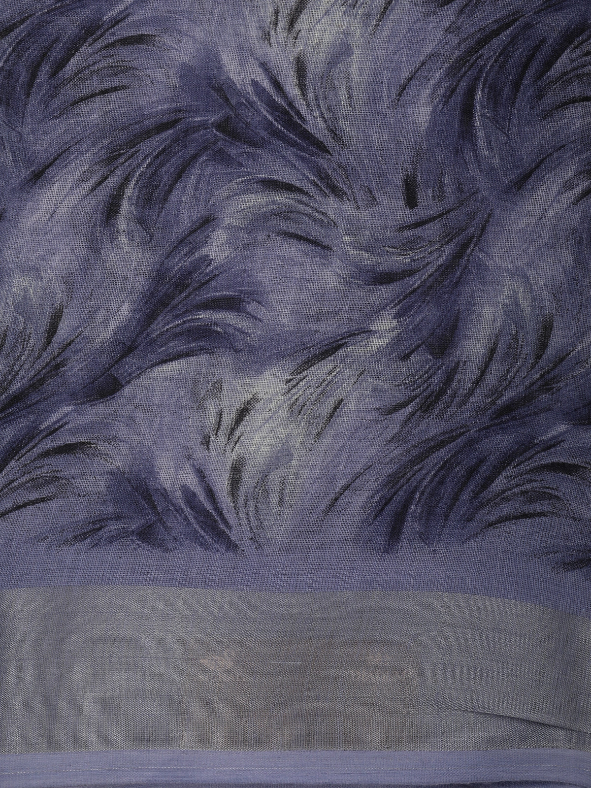 This Dusty Lavender Abstract Printed Design Mixed Cotton Saree exudes understated elegance with its soft, muted color palette and contemporary artistry. The soothing dusty lavender base is beautifully enhanced with fluid abstract brushstroke patterns in deeper slate and charcoal tones, creating a graceful sense of movement across the drape.