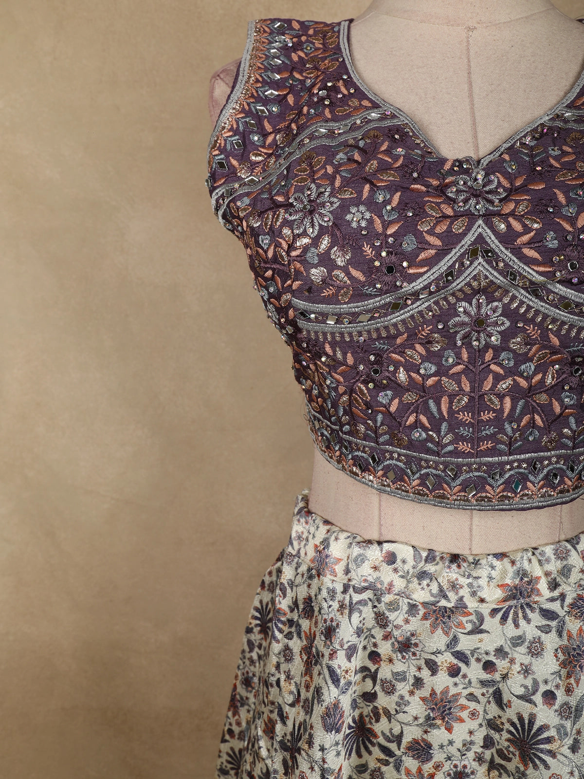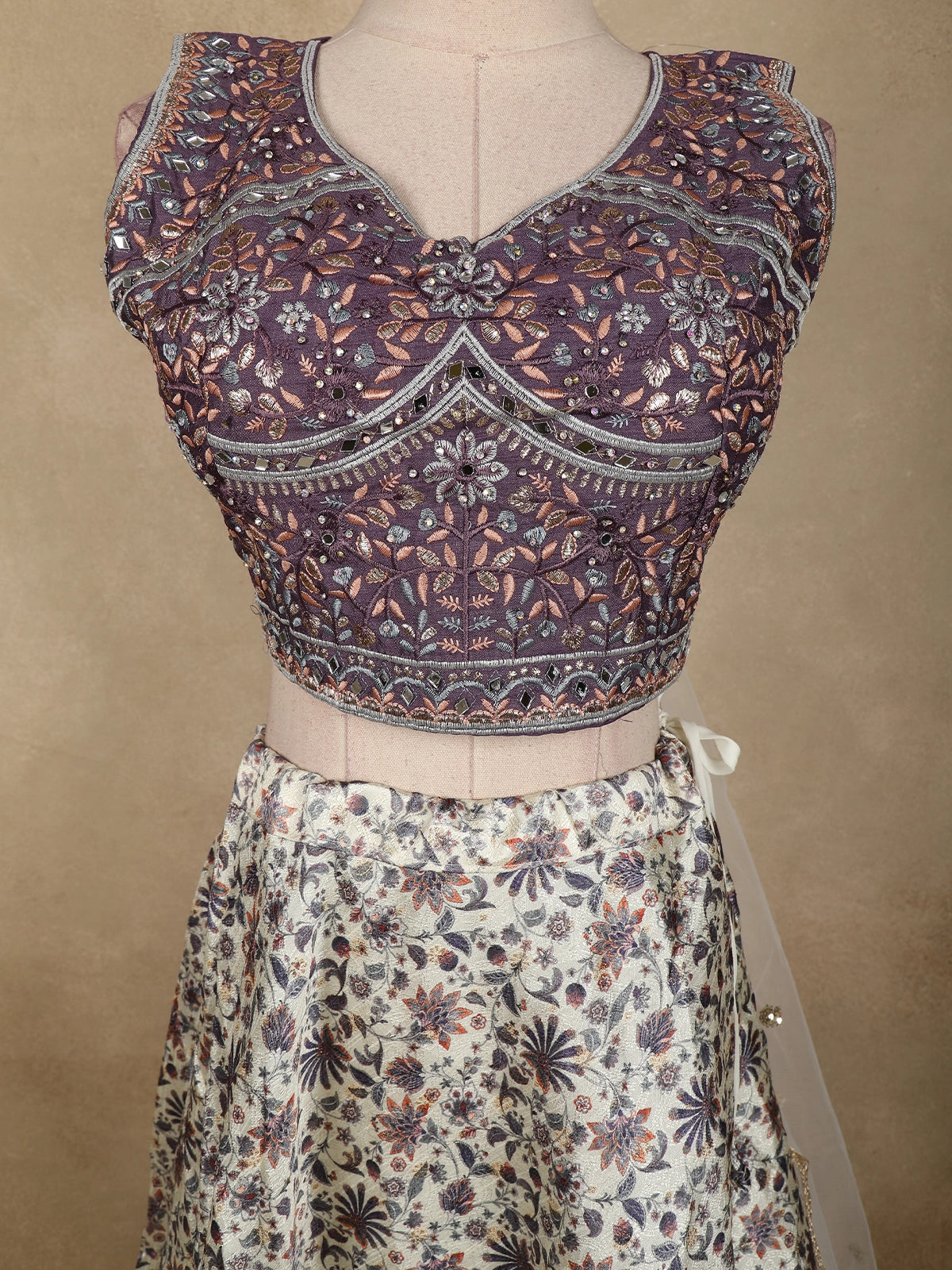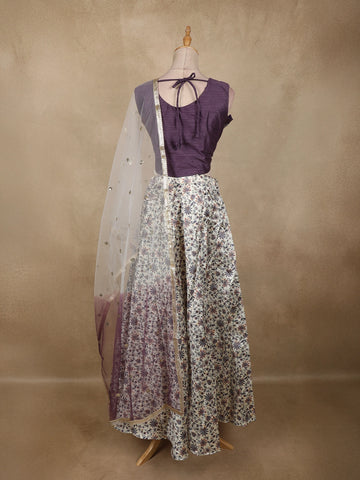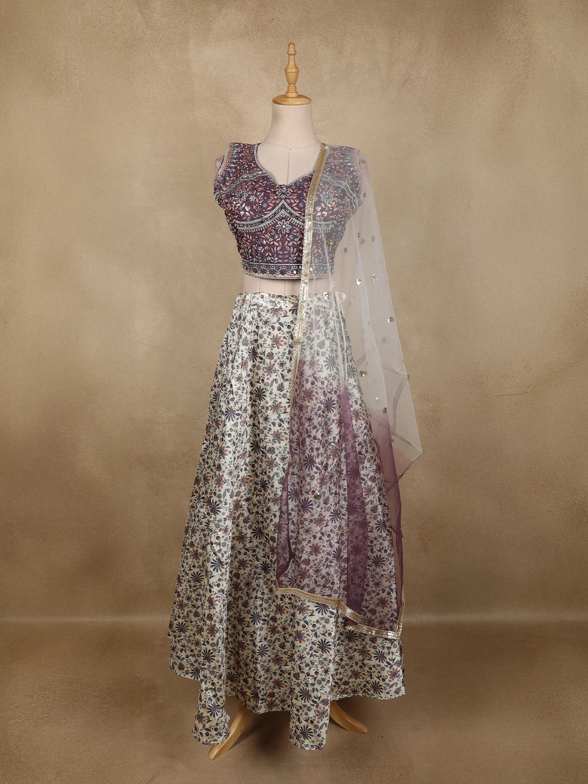 Dusty Lavender Floral Thread Embroidered Design Organza Bridesmaid Lehenga with Dupatta