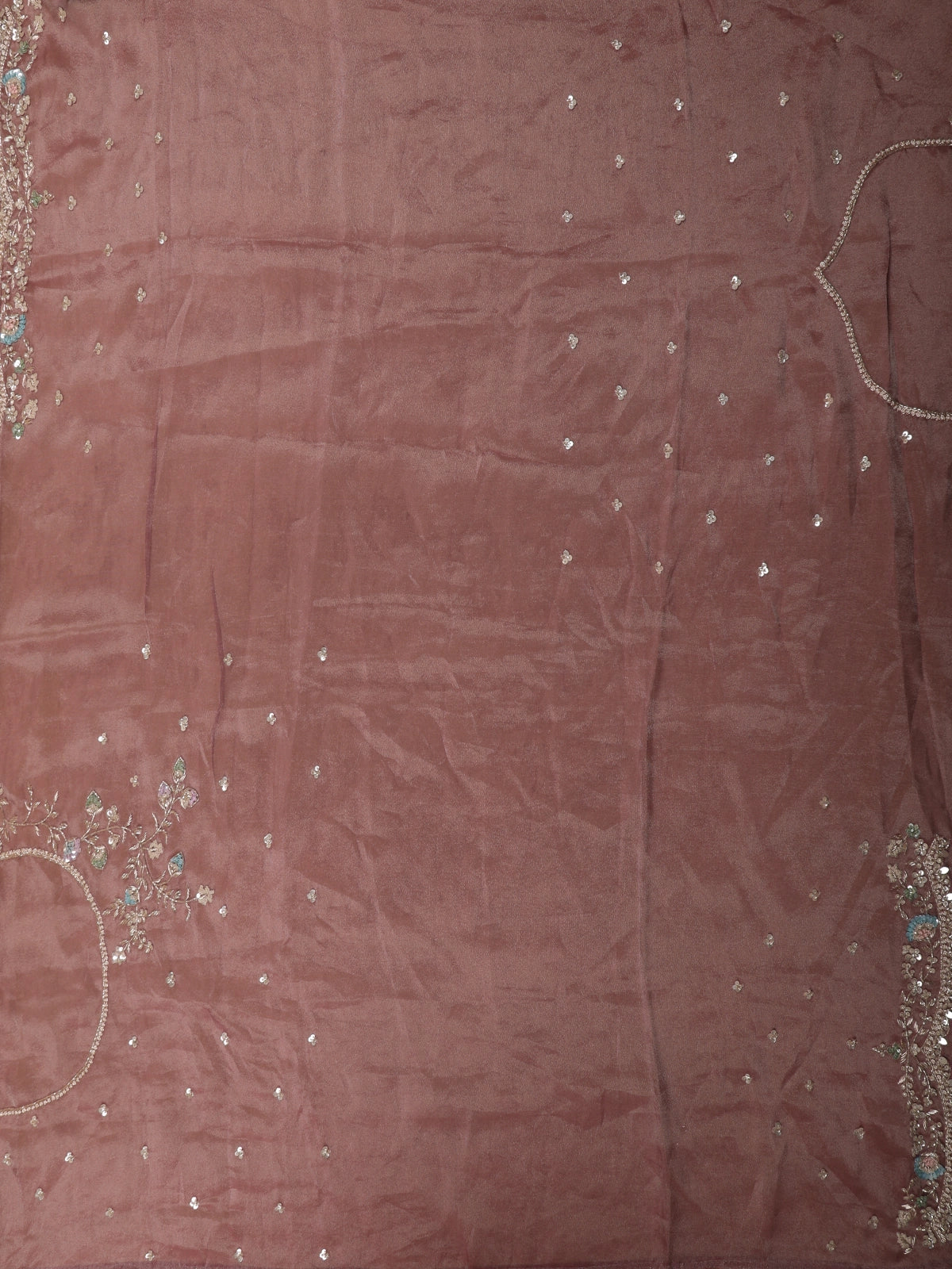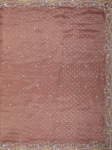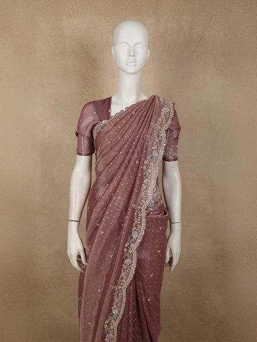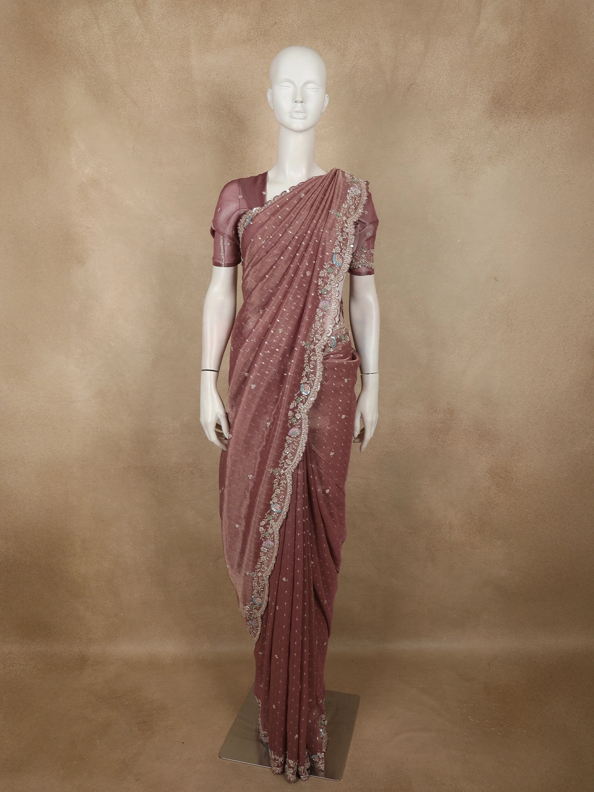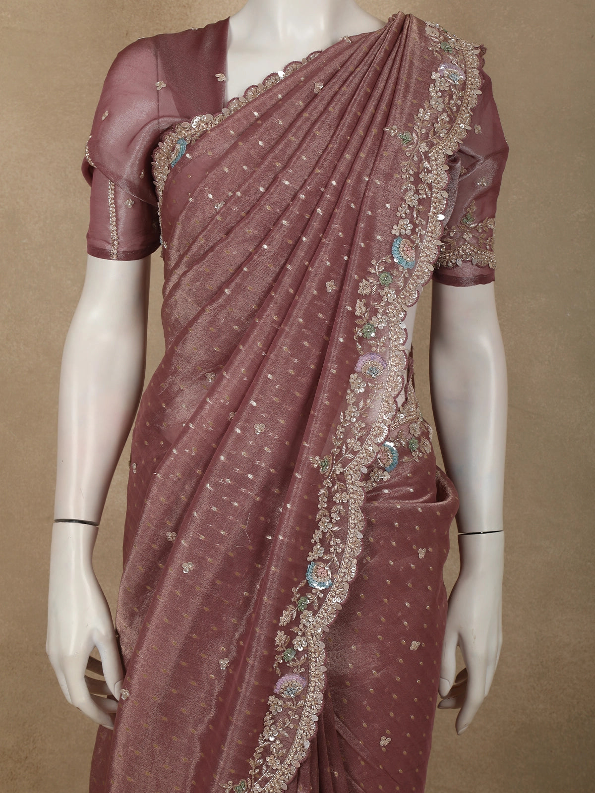 Dusty Mauve Butta Zari Woven Design Organza Fancy Saree with Scalloped Border