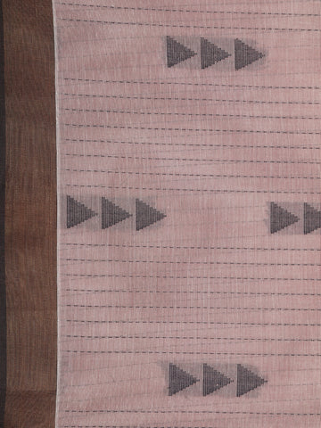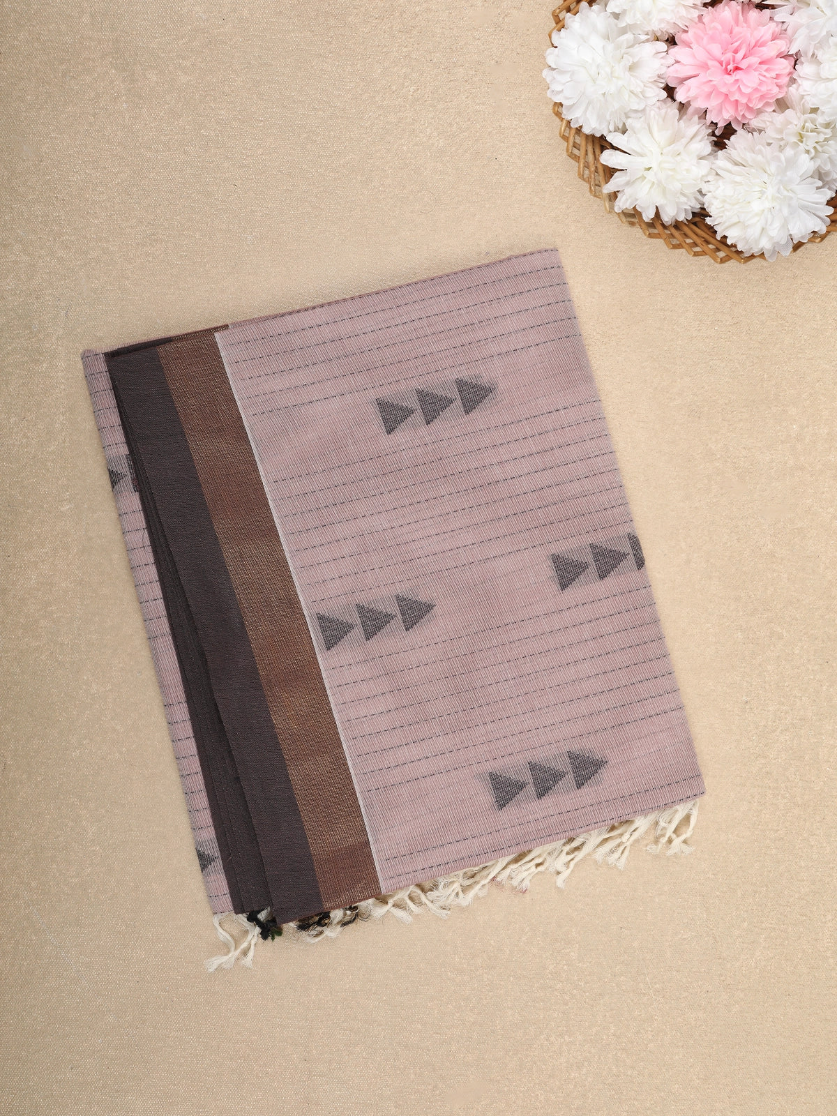 Dusty Pink Triangle Motif Cotton Saree with Contrast Brown Border