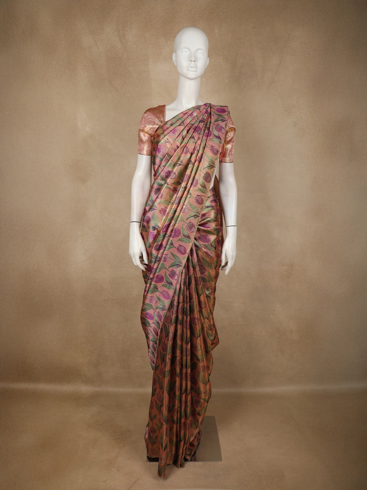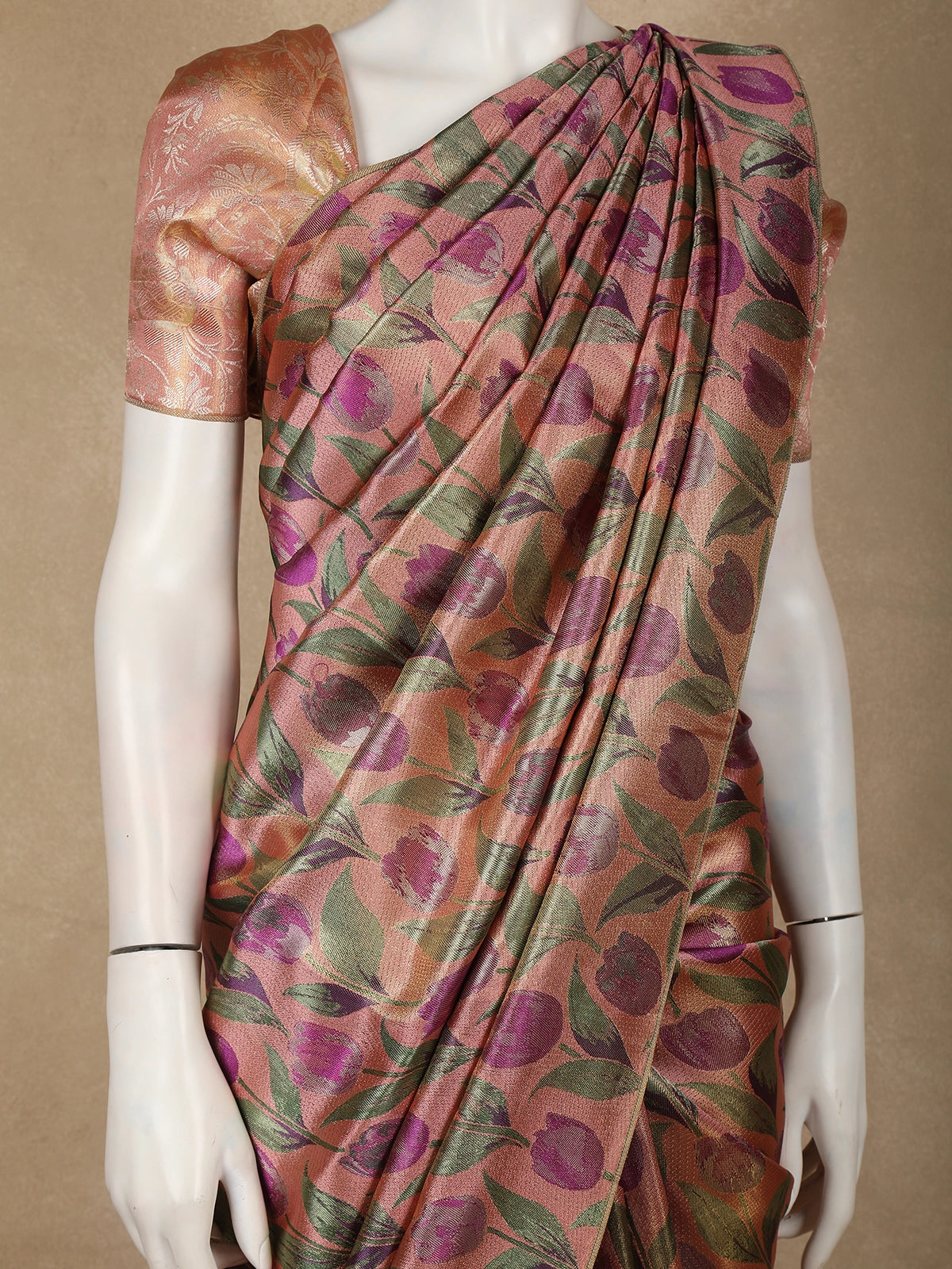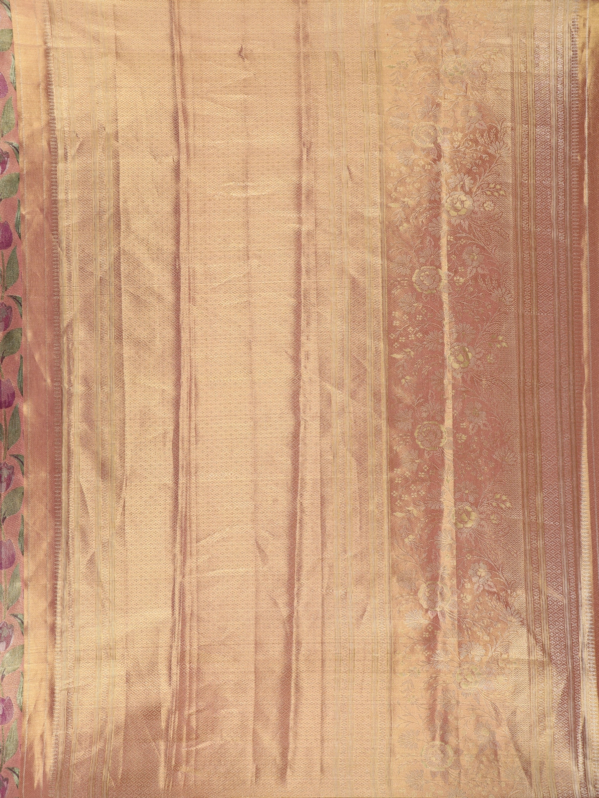 Dusty Rose Floral Design Tissue Silk Saree